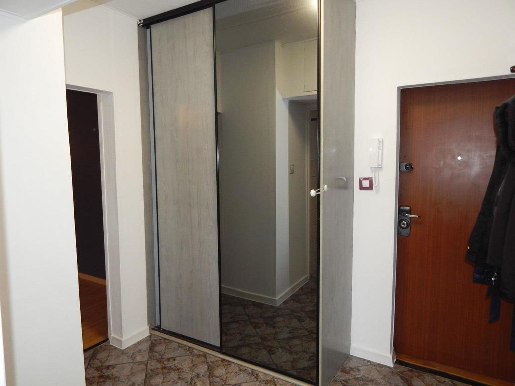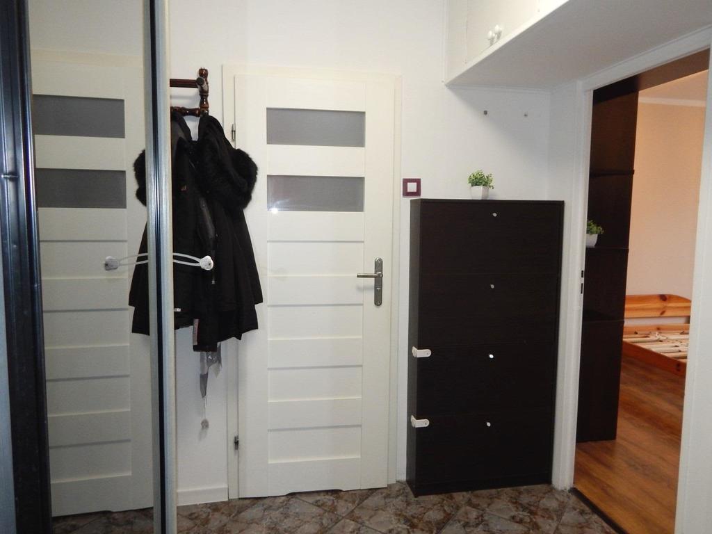 - szeroki korytarz z szafą w zabudowie,