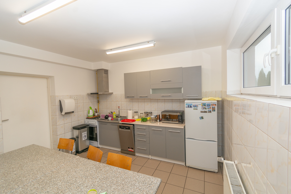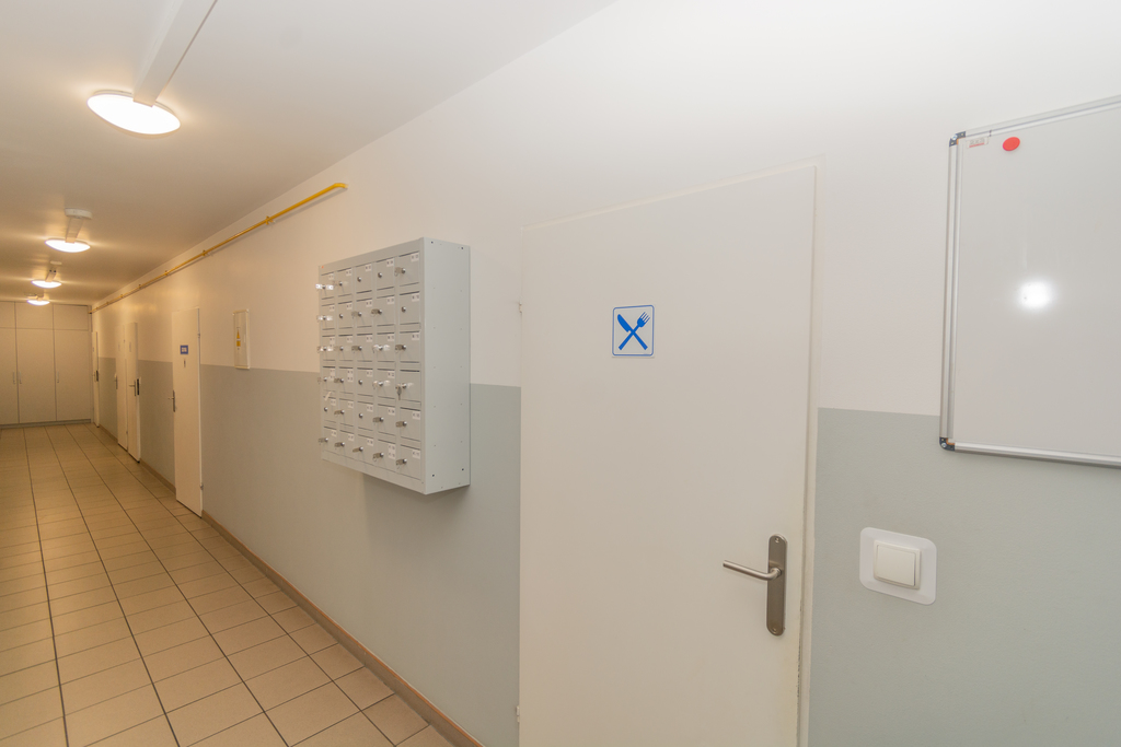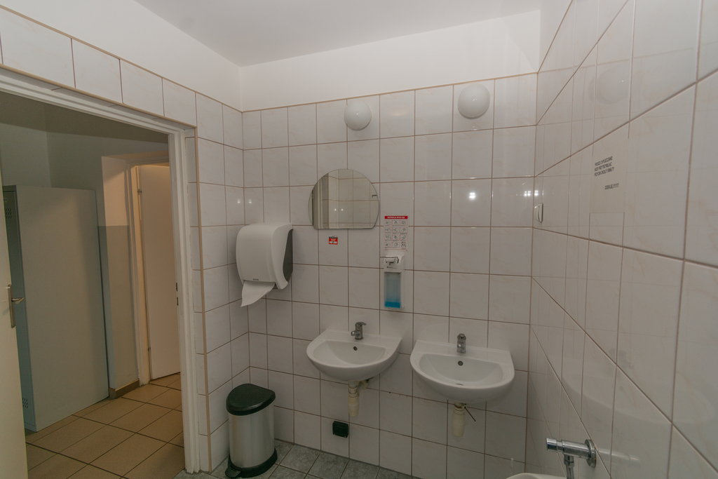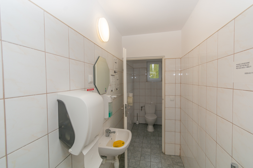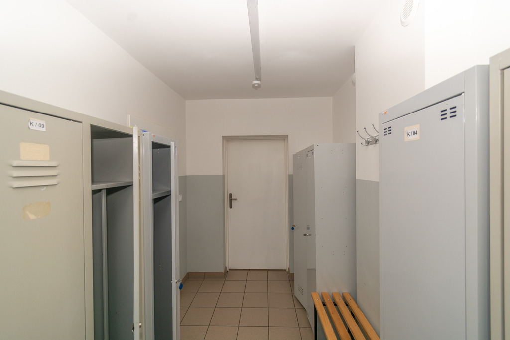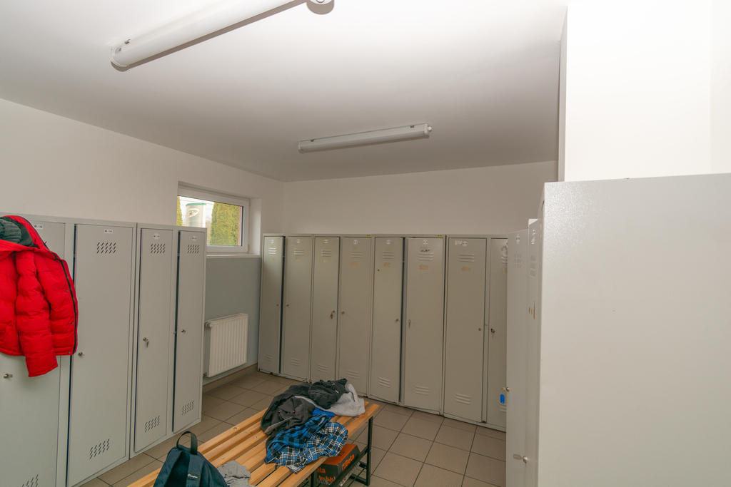 Pomieszczenia socjalne położone na parterze o łącznej powierzchni 135 m2, składają się z szatni damskiej, męskiej, toalet, pryszniców oraz w pełni wyposażonej kuchni.