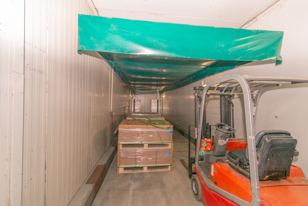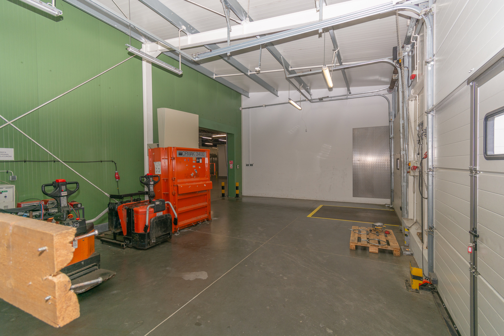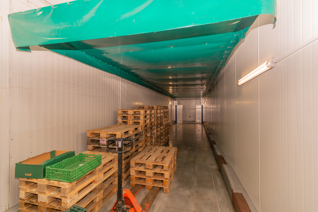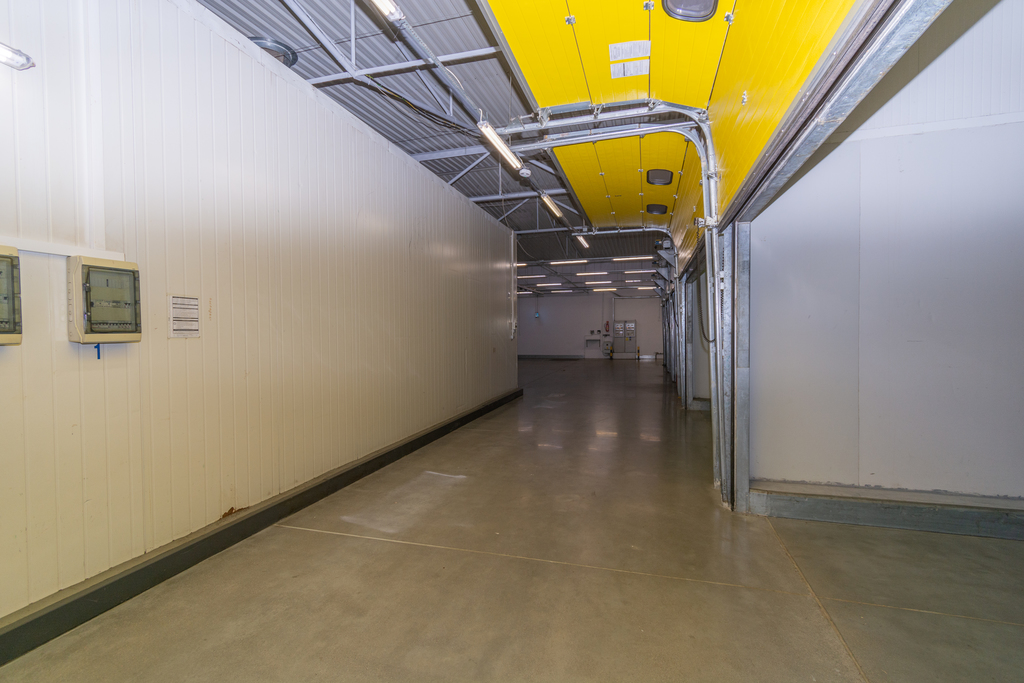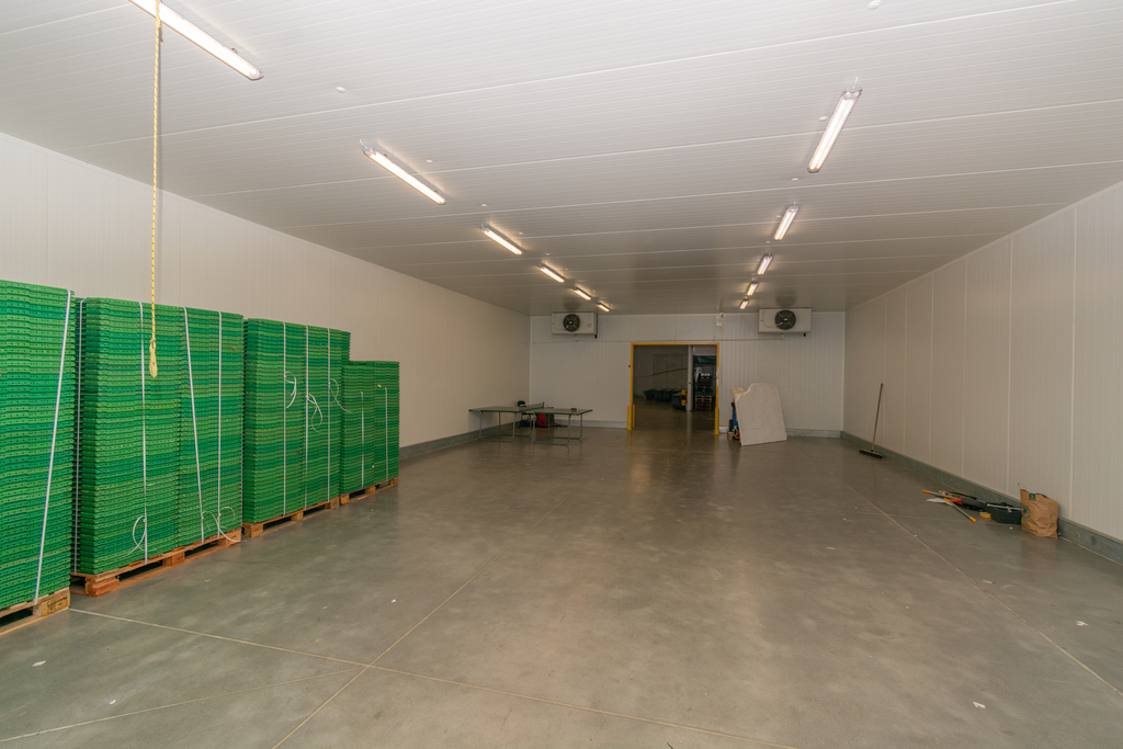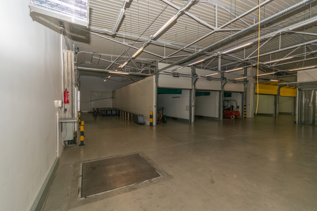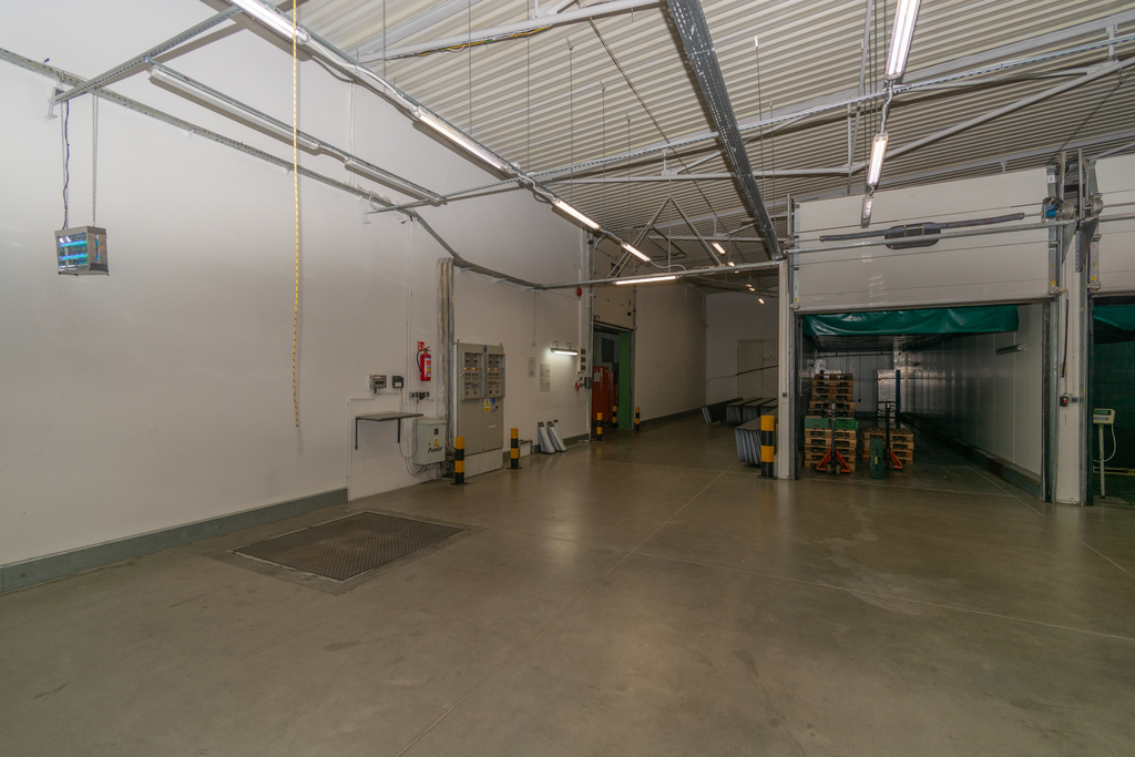 Hala murowana o powierzchni użytkowej 1605 m2 z niepylącą posadzką, posiada 9 chłodni o łącznej powierzchni 600 m2, które mogą zostać usunięte.
