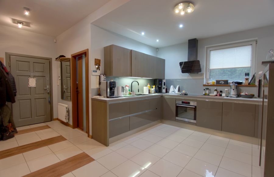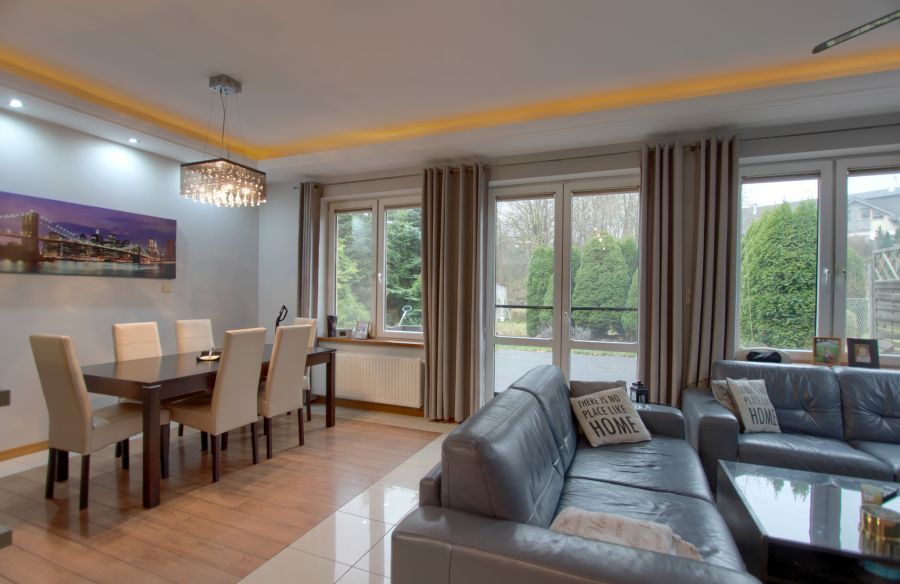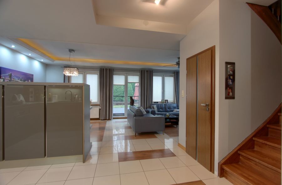 - duży salon z otwartą kuchnią oraz wyjściem na taras,
