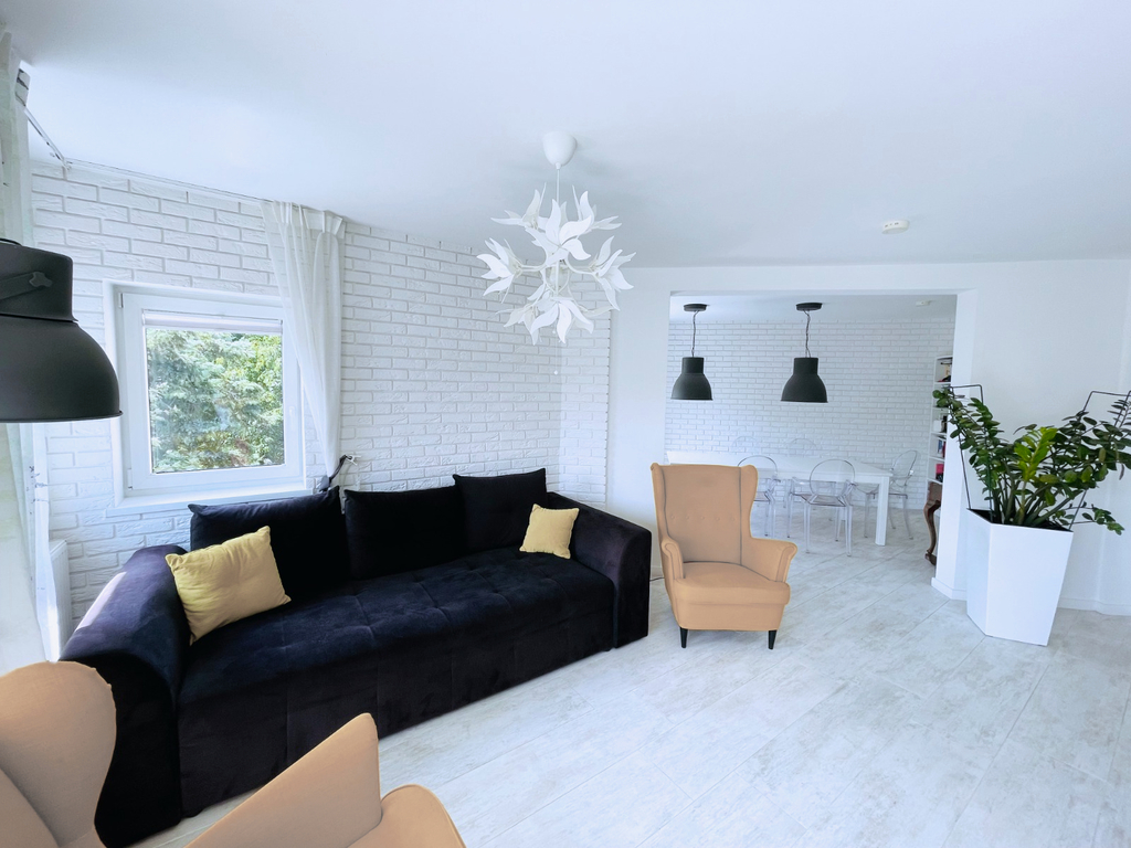 7. **Piękne wykończenia:** Wnętrza urządzone są w nowoczesnym stylu, a kuchnia została wyposażona w meble na wymiar, co dodaje elegancji i funkcjonalności.