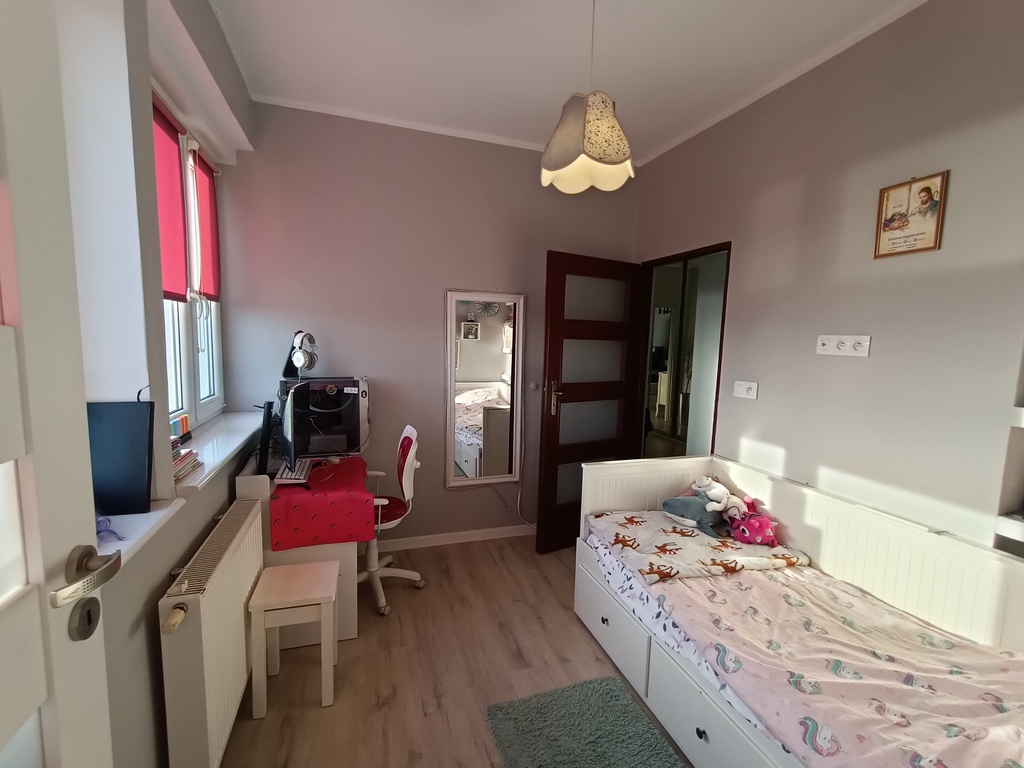 Lokal o powierzchni 69,91m2 składa się z 4 pokoi (wg. Księgi wieczystej 3 pokoje, kuchnia, łazienka, przedpokój), kuchni, łazienki z WC oraz przedpokoju. Największy pokój został zaaranżowany przez obecnych właścicieli na dwa mniejsze, przejściowe pokoje, które w chwili obecnej są wykorzystywane jako mini sypialnia i pokój dzienny dla córki. W 2016 roku mieszkanie przeszło remont, podczas którego wymieniono instalację elektryczną w kuchni, zamontowano instalacje oświetlenia punktowego w pokojach. Ściany wykończone gładzią i malowane, w kuchni częściowo pokryte glazurą częściowo malowane, w łazience ściany wykończone glazurą. Podłogi wykończone panelami, w łazience i kuchni terakotą. Łazienka razem z WC wyposażona w kabinę prysznicową. Czynsz administracyjny to ok. 1100 zł naliczany w stosunku do 5 zgłoszonych i zameldowanych osób co wiąże się też ze zużyciem wody użytkowej zarówno ciepłej jak i zimnej. Składniki czynszu to zaliczki na zimną i ciepłą wodę, ogrzewanie, fundusz remontowy, wywóz śmieci, utrzymanie czystości, administrowanie budynkiem.