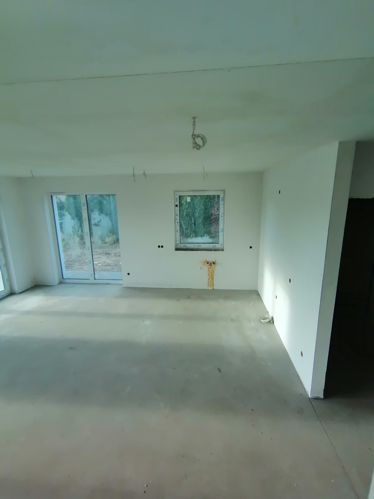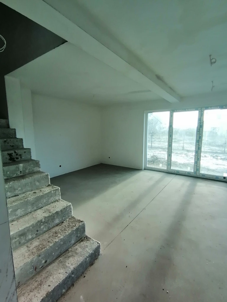 Okna PCV trzyszybowe, brama garażowa z silnikiem elektrycznym. Rozprowadzona instalacja elektryczna, instalacja alarmowa.