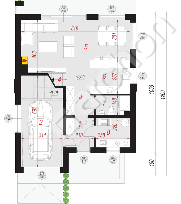 - garaż - 18,59 m2,
