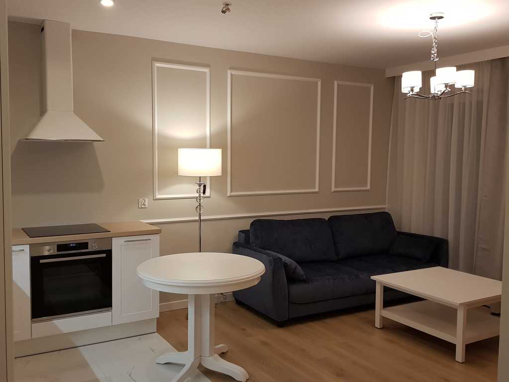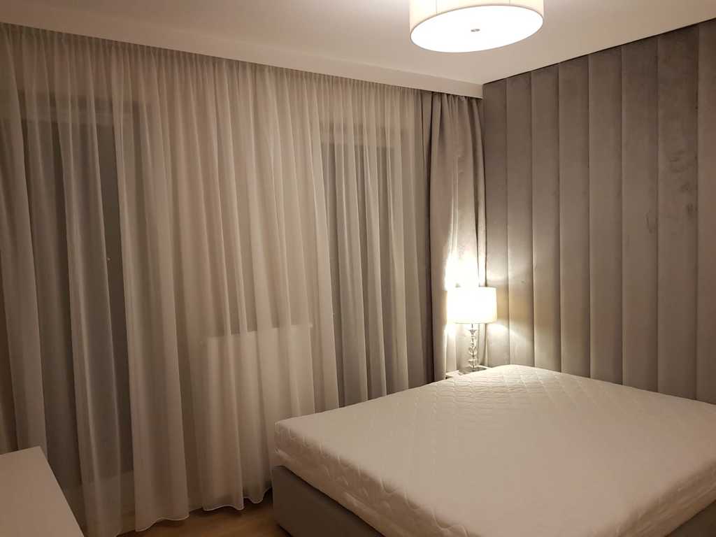 OPIS MIESZKANIA: pokój dzienny połączony z kuchnią, z wyjściem na balkon od strony zachodniej. Balkon stanowi dodatkową powierzchnię i pozwala na odpoczynek po całodziennej pracy. Sypialnia oddzielnie. W pokoju rozkładana kanapa, stolik, RTV, szafka, meble kuchenne w zabudowie, w niej lodówka z zamrażarką, zmywarka 65 cm. Płyta indukcyjna, piekarnik elektryczny, wiele szafek i szuflad, materiały wysokiej jakości. W sypialni podwójne łóżko, szafa 4 drzwiowa. W łazience kabina prysznicowa z odpływem liniowym, umywalka z szafką, pralka. Na podłodze wysokiej jakości panele, a w łazience terakota. Koszt 3200 zł razem z miejscem postojowym i komórką lokatorską na piętrze o powierzchni 5 m2. Możliwość wzięcia mieszkania bez garażu podziemnego w wówczas cena mieszkania 3000 zł. Do hali garażowej zjazd bezpośrednio windą.