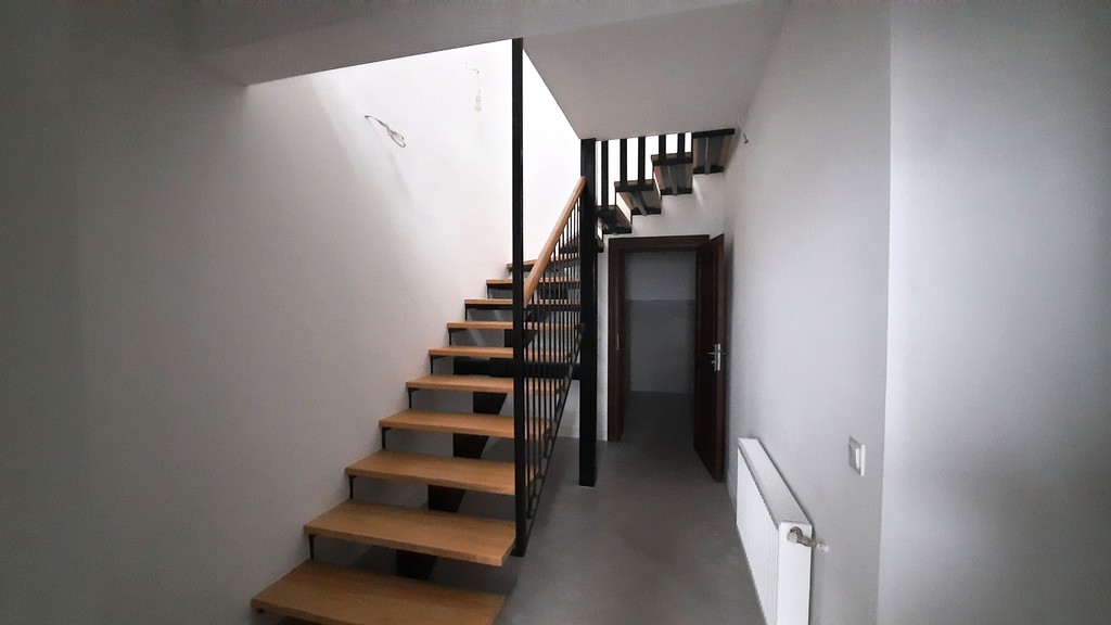 Schody na II poziom z piękną barierką z metaloplastyki.