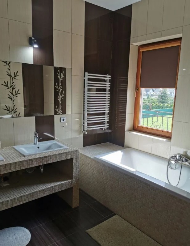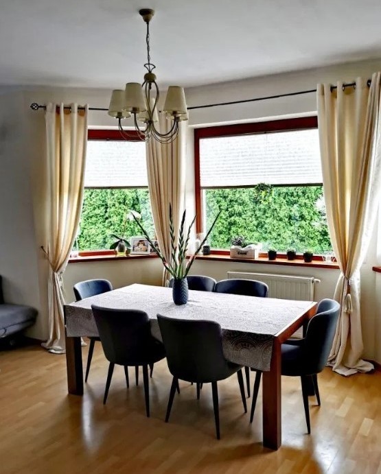 Okna drewniane, ogrzewanie gazowe podłogowe + grzejniki z pieca kondensacyjnego, w salonie kominek z płaszczem wodnym.