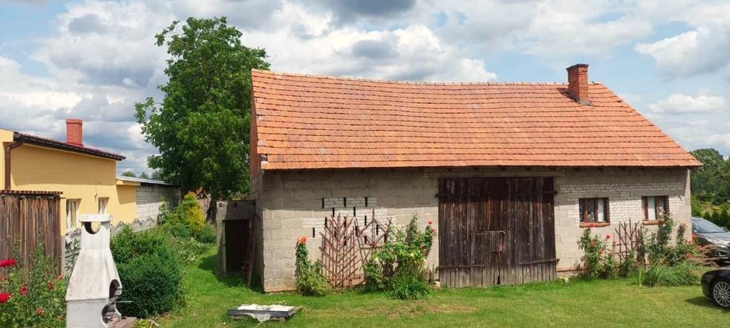 Na działce obok domu stoi murowana stodoła idealnie nadająca się do własnej aranżacji.