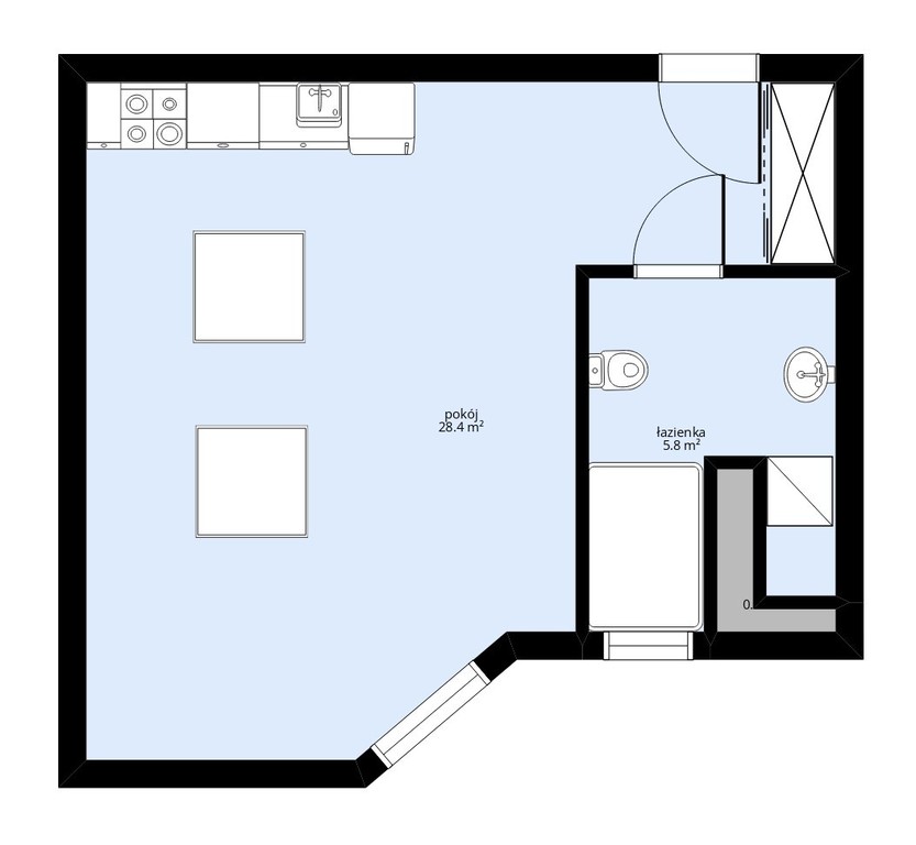 Na całkowitą powierzchnię 34,2 m2 mieszkania składają się: