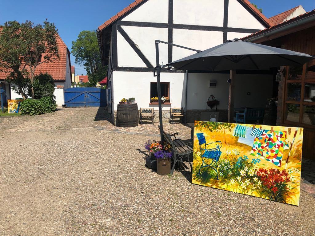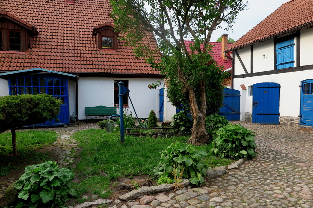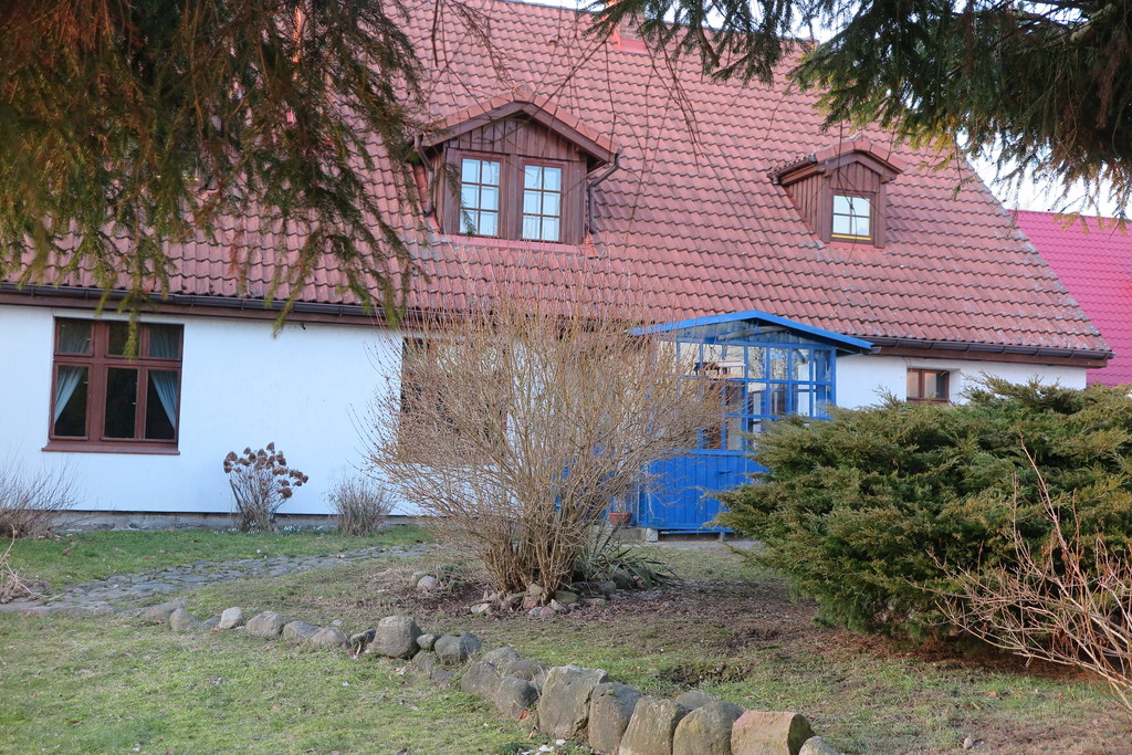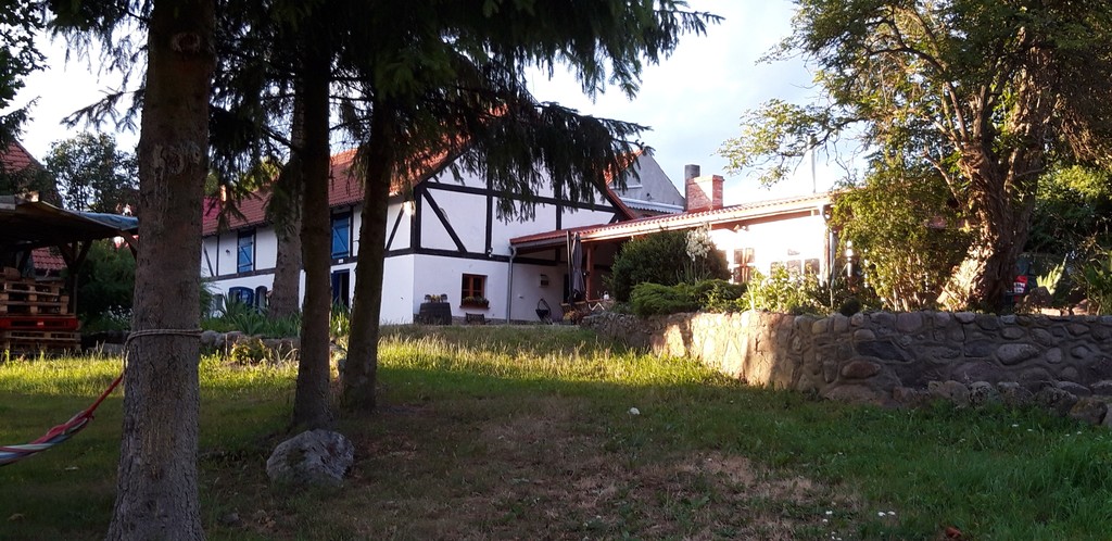 W skład zabudowań wchodzi dom poniemiecki około 130-letni o powierzchni 270mkw. Na parterze 5 pokoi, dwie łazienki oraz kuchnia. Na piętrze 4 pokoje oraz 3 łazienki z możliwością przebudowy na 4. Dodatkowo możliwość przystosowania poddasza. Budynek gospodarczy z murem pruskim o powierzchni 160mkw również z możliwością wykorzystania poddasza. Na budynek składa się kotłownia (nowy piec na pelet, stary piec na drewno, warsztat) przejście do części stajni aktualnie wykorzystywanej jako drewutni. "Artestajnia" to pomieszczenia po stajni wykorzystane na miejsce dla turystów i odwiedzających, połączona z szarą kuchnią drzwiami. Kolejną zabudową jest "chata" o powierzchni 34mkw, połączona z artestajnią i szarą kuchnią zadaszoną wiatą (tu: suszarnia i wędzarnia)chata - to kuchnia dla gości, ale także miejsce spotkań i nocnych pogawędek, klimatycznie urządzona kawiarenka – to miejsce spotkań i letnich biesiad.