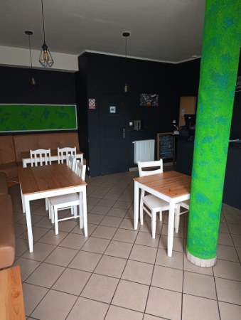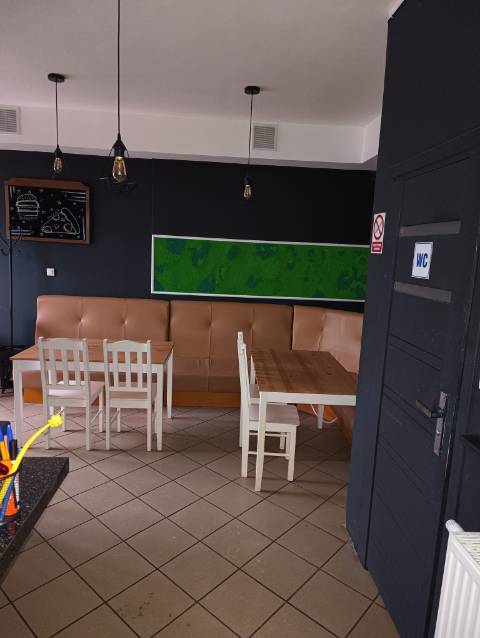 Duża sala usługowa - 32 m2, część kuchenna (istnieje możliwość pozostawienia wyposażenia i pieca do pizzy za opłatą), pomieszczenie do przygotowania produktów, zmywak, wc dla personelu i wc dla klientów.