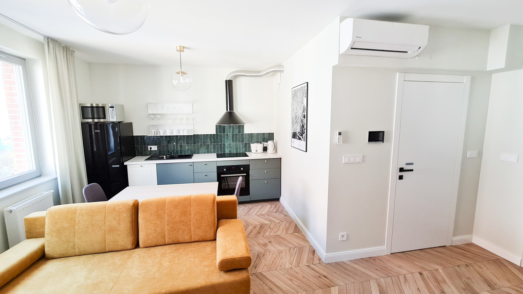 Mieszkanie jest w pełni umeblowane, co sprawia, że jest gotowe do natychmiastowego zamieszkania. Kuchnia została wyposażona we wszystkie niezbędne sprzęty, umożliwiając wygodne przygotowywanie posiłków.