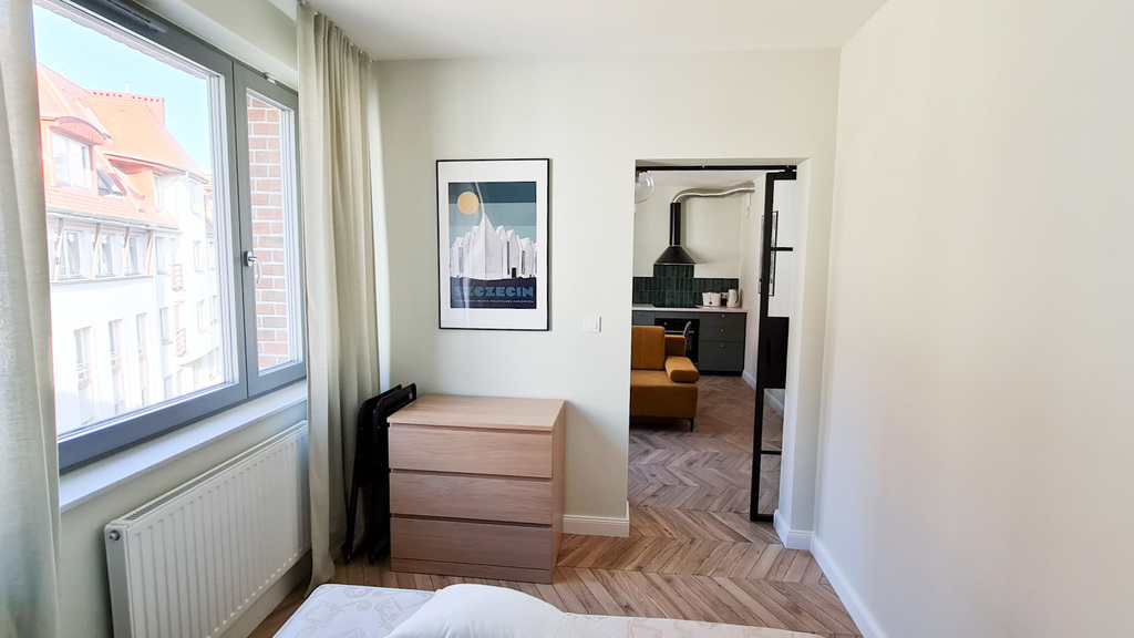 Do wynajęcia atrakcyjne mieszkanie o powierzchni 34 m2, składające się z dwóch pokoi, usytuowane na trzecim piętrze czteropiętrowego budynku w sercu Starego Miasta. Lokalizacja jest wyjątkowo korzystna, zaledwie kilka kroków od malowniczych Wałów Chrobrego, Bulwarów Szczecińskich oraz w otoczeniu licznych restauracji.