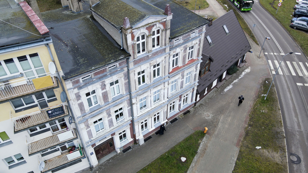 Do mieszkania przynależy piwnica o powierzchni 5,85 m. oraz część placu usytuowanego na tyłach budynku, który mieszkańcom kamienicy służy za miejsca parkingowe.