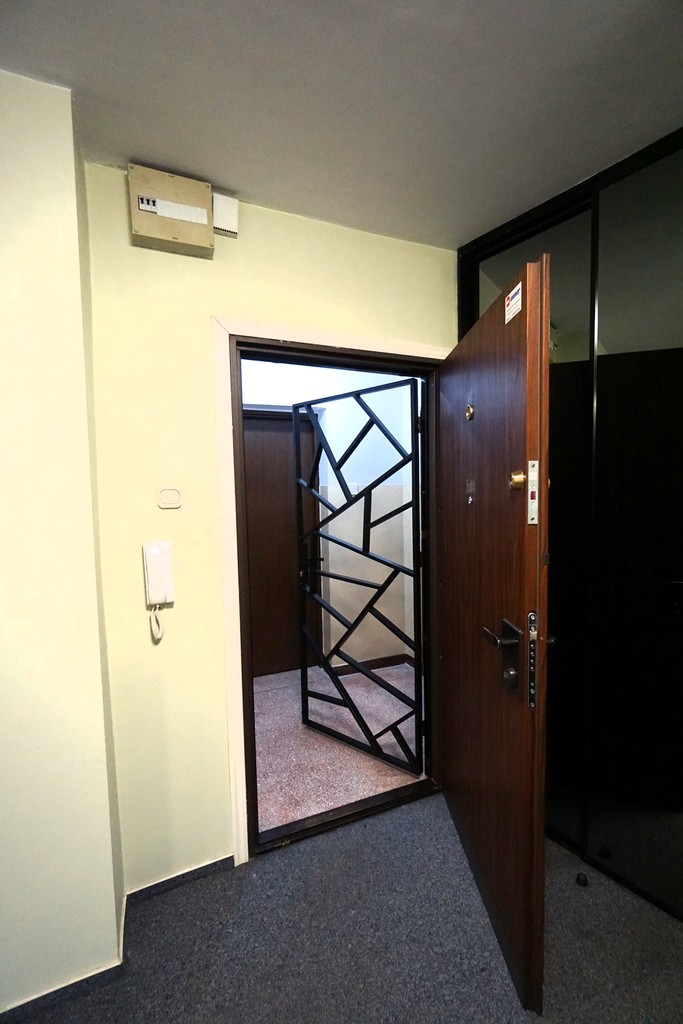 Ogrzewanie i ciepła woda z sieci miejskiej. Okna PCV. Do lokalu prowadzą podwójne drzwi, na jednych zamontowana jest krata zabezpieczająca.