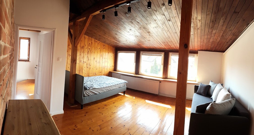 Dodatkowo znajduje się tam również małe mieszkanko z niezależnym wejściem - idealne jako oddzielne mieszkanie (przedpokój, sypialnia, garderoba, kuchnia, łazienka z prysznicem).To przestronne mieszkanie jest idealne dla osób potrzebujących dodatkowej przestrzeni, zwłaszcza dla tych, którzy pracują z domu i potrzebują specjalnego miejsca do pracy z zachowaniem ciszy i spokoju lub na wynajem .