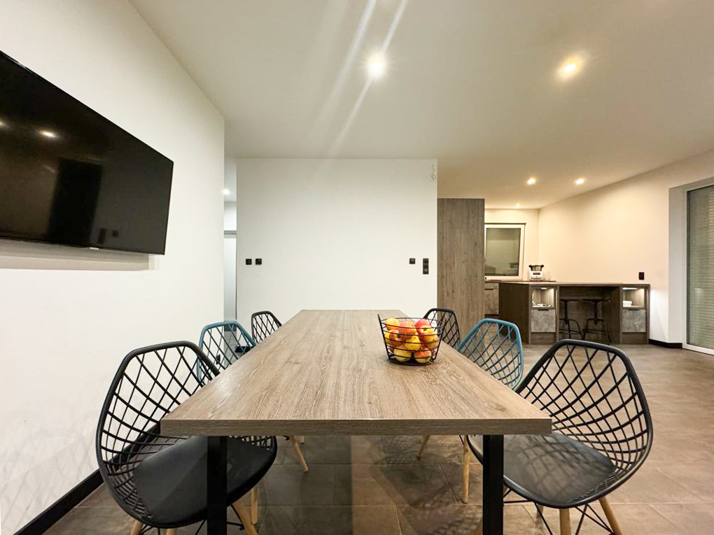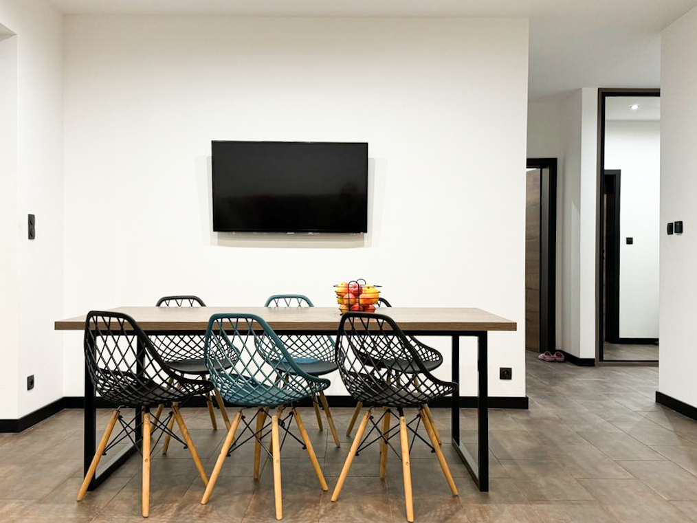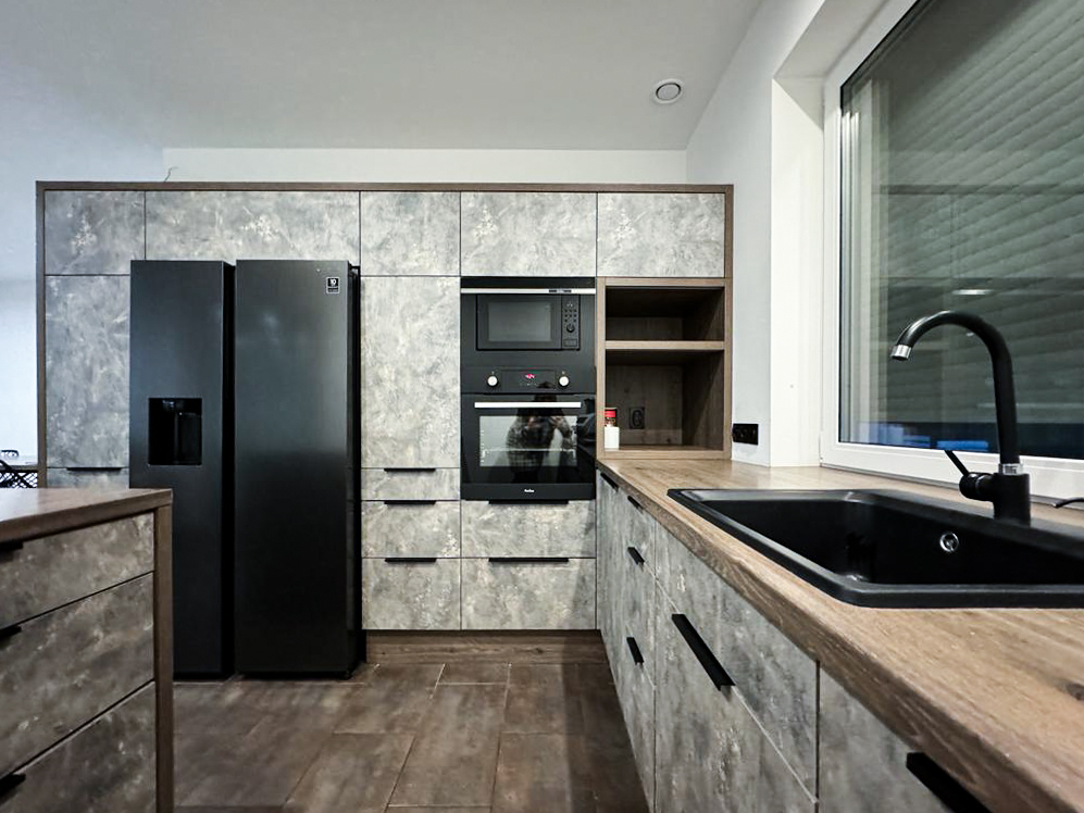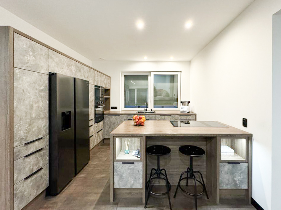 * meble kuchenne w zabudowie + wyspa + stół i 6 krzeseł