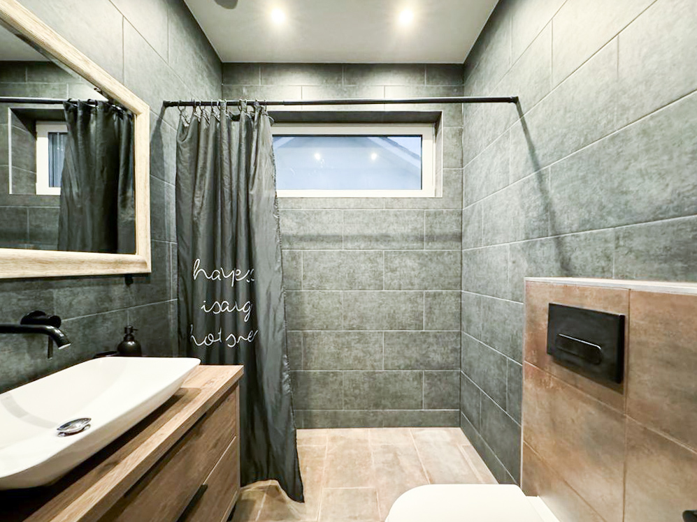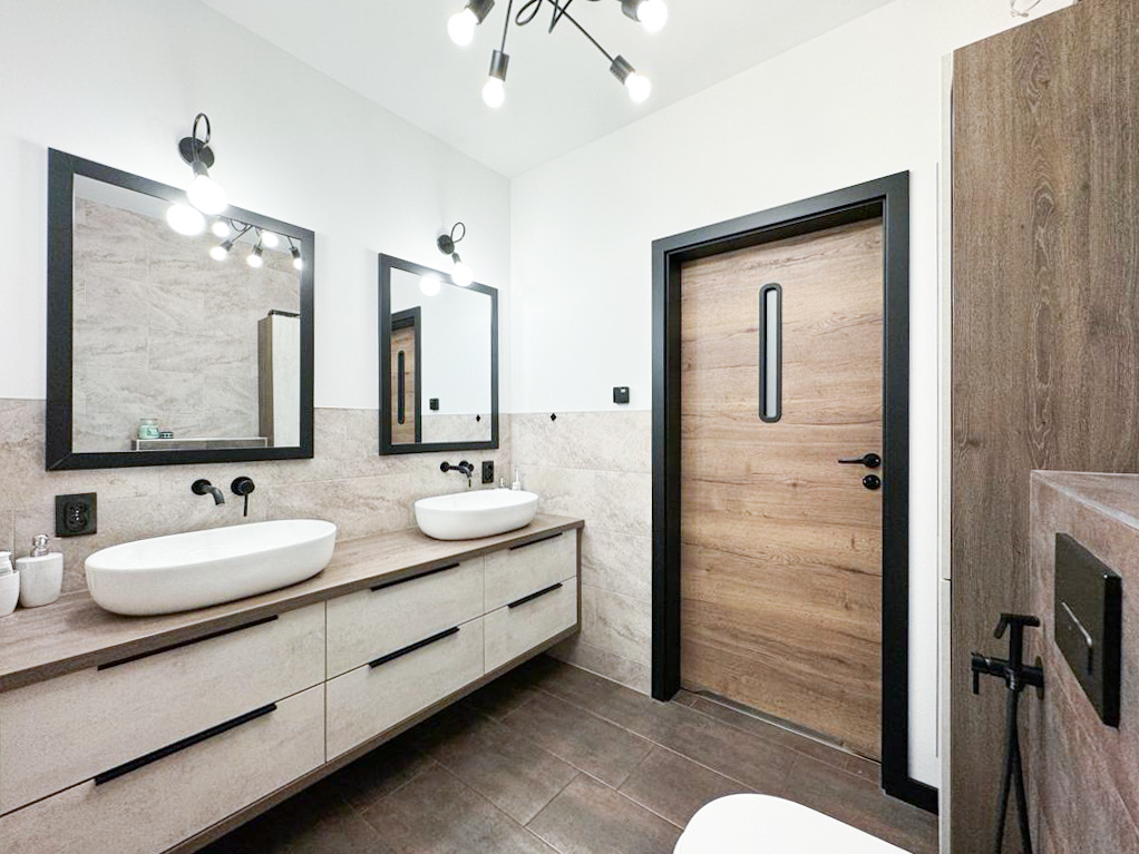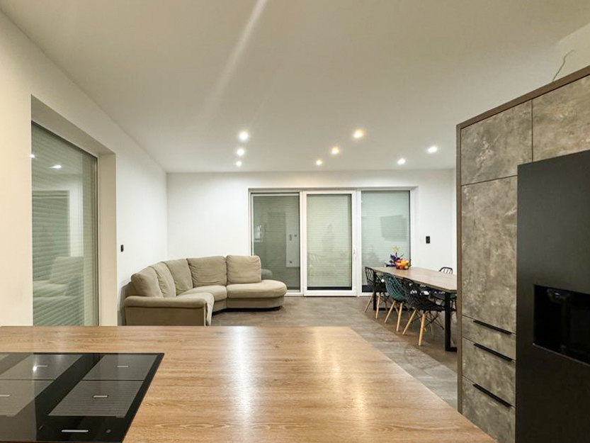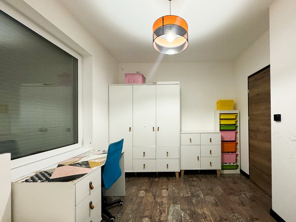 Dom składa się z 5 pokoi w tym: dużego salonu połączonego z aneksem kuchennym i jadalnią z wyjściem na słoneczny taras, 4 sypialni, pomieszczenia gospodarczego oraz 2 łazienek.