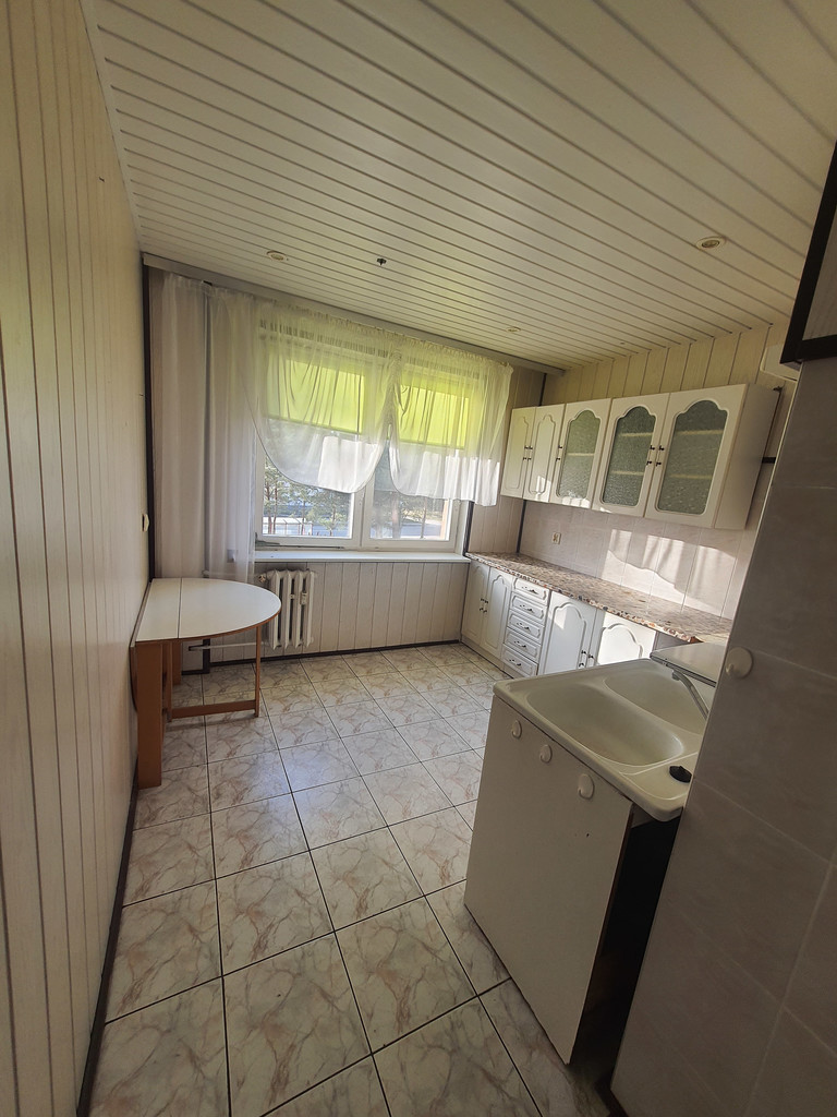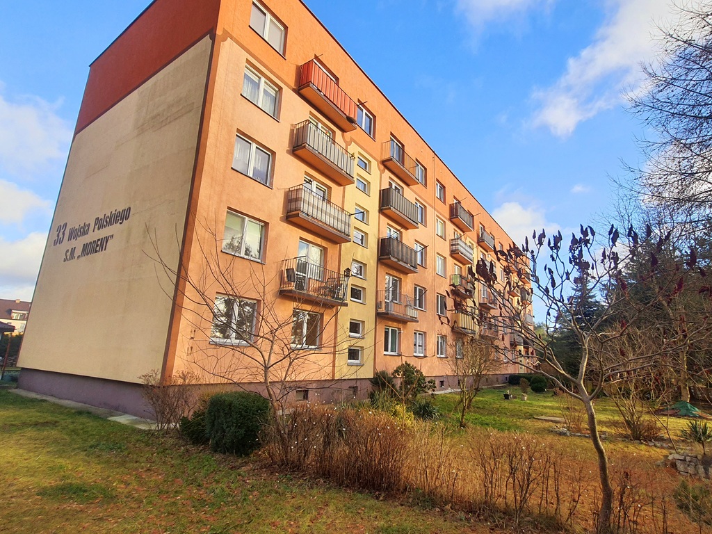 Mieszkanie jest rozkładowe, ciepłe i jasne, posiada balkon wychodzący na ogród, który jest do dyspozycji mieszkańców. Przed budynkiem znajduje się również grill i miejsce do rekreacji. Na ścianach położona gładź, podłogi pokryte terakotą oraz panelami. Okna drewniane nowego typu.