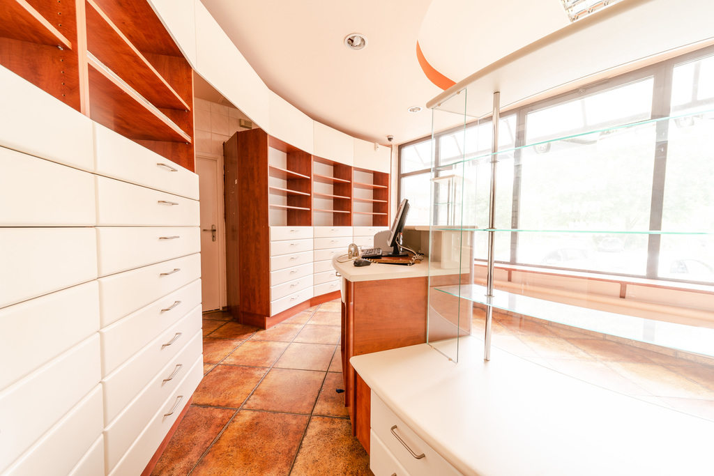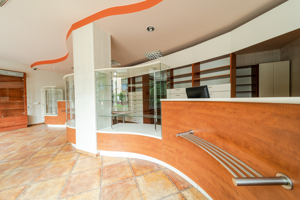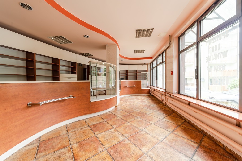 Przedmiotem oferty jest lokal usługowo-handlowy, w którym przez wiele lat prowadzona była apteka. Lokal posiada 2 wejścia oraz duże witryny okienne. Na powierzchnię 188,4 m2 lokalu składa się 8 pomieszczeń, w tym sala ekspedycyjna o pow. 51,5 m2 z meblami w zabudowie oraz pomieszczenie socjalne o pow. ok. 40 m2 z umeblowanym i wyposażonym aneksem kuchennym oraz łazienką z kabiną prysznicową i wanną. Do powierzchni lokalu wliczone jest pomieszczenie piwniczne o pow. 21,9 m2.