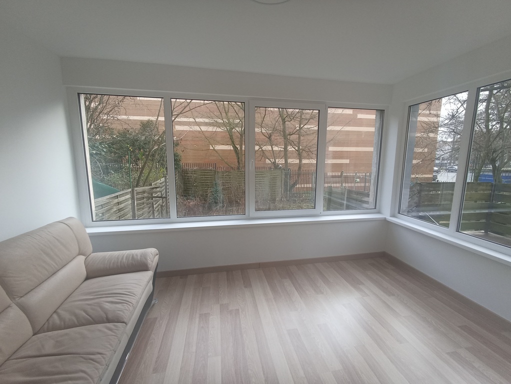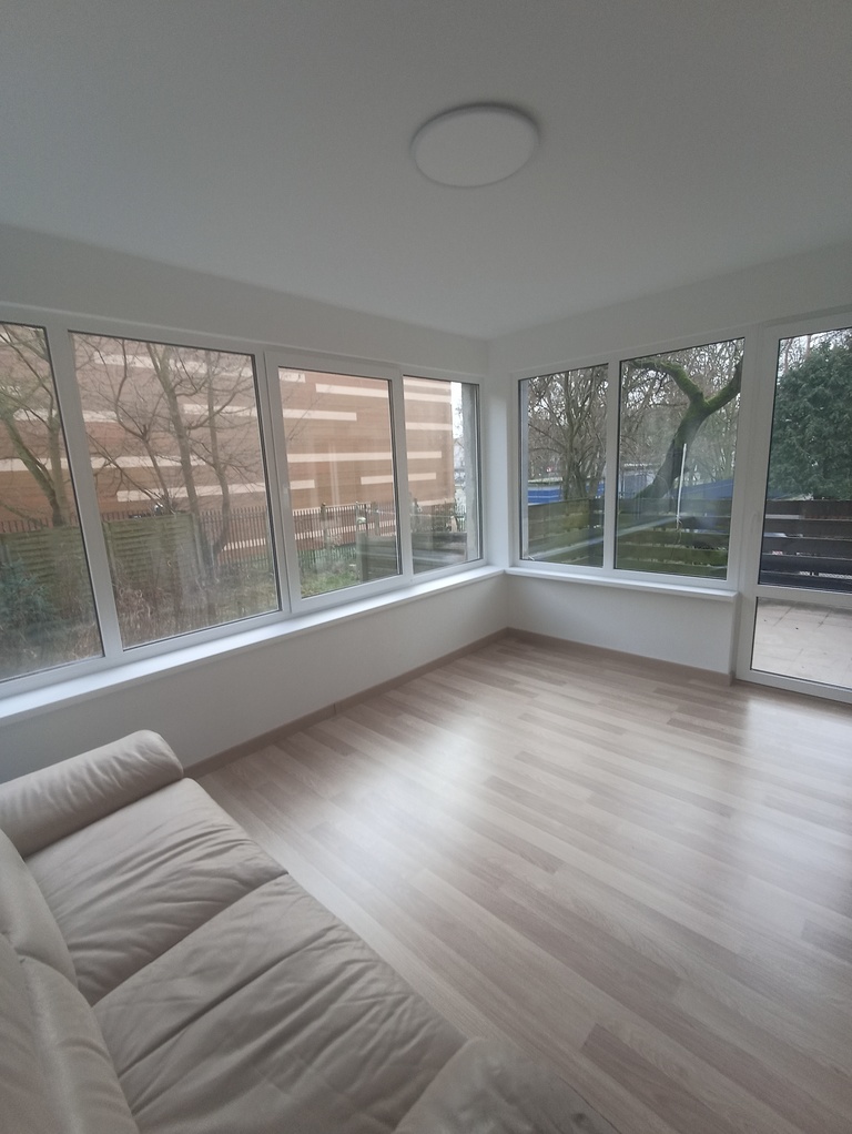 3-pokojowe w pełni rozkładowe mieszkanie połączone z oszkloną, ogrzewaną werandą z wyjściem na taras i do ogródka.