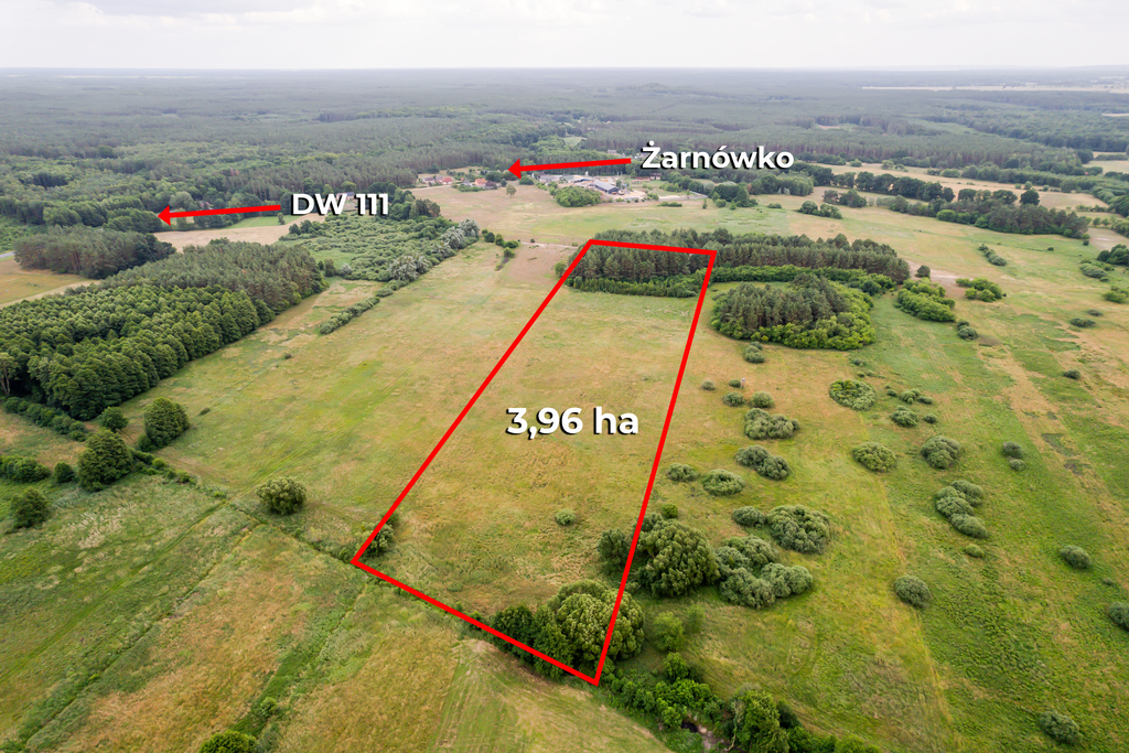Oferujemy Państwu zakup dużej działki rolnej o powierzchni 3,96 ha, która idealnie nadaje się pod siedlisko. Działka znajduje się we wsi Żarnówko, w gminie Stepnica. Jest to prostokątny teren, częściowo zalesiony, nieuzbrojony, z dojazdem drogą polną.