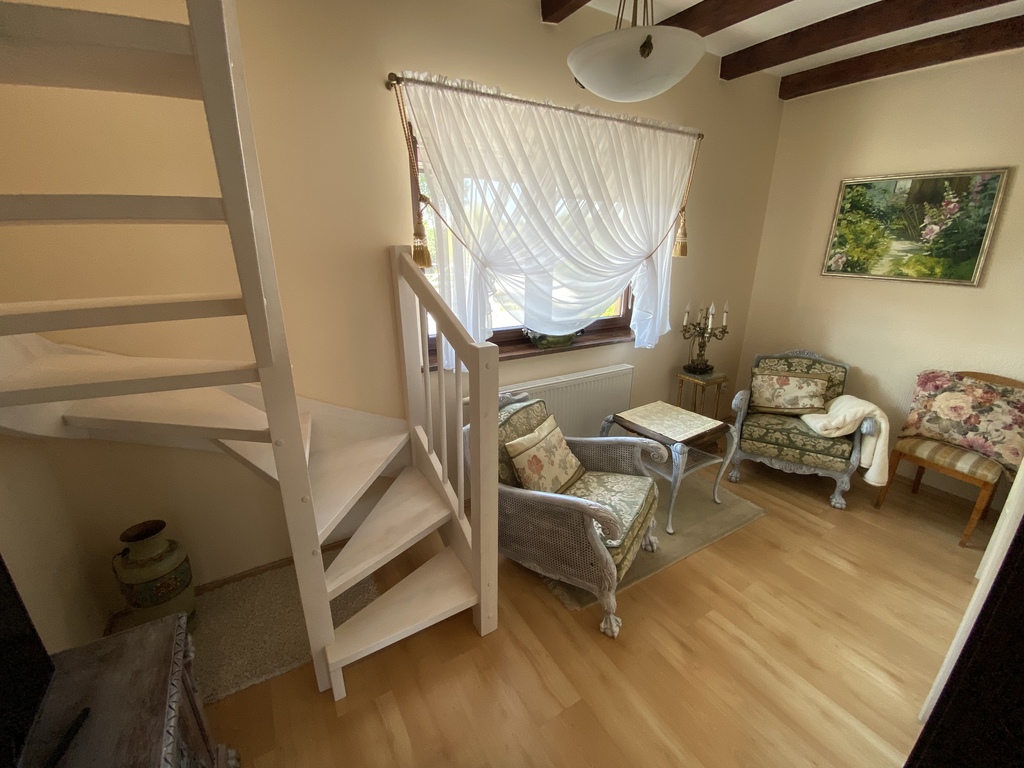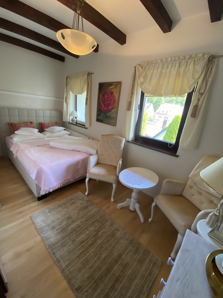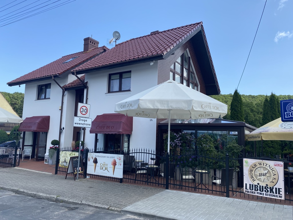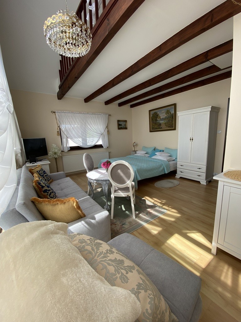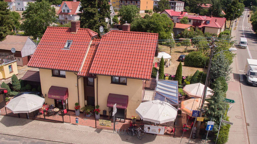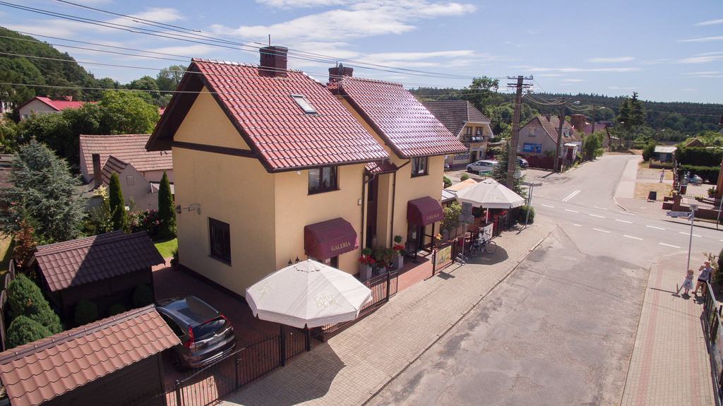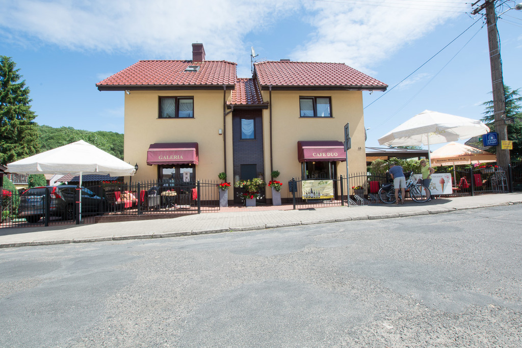 Na parterze znajduje się kawiarnia, galeria - lokale posiadają odzielne wejścia wraz z zapleczem kuchenno-socjanym. na piętrze i poddaszu znajdują się trzy apartamenty na wynajem z własnymi łazienkami.