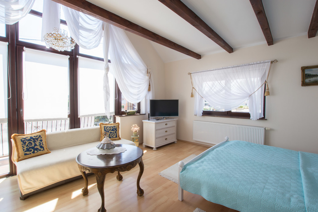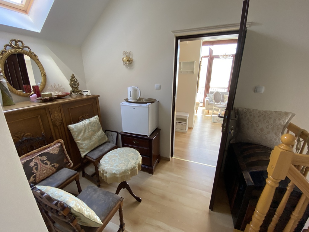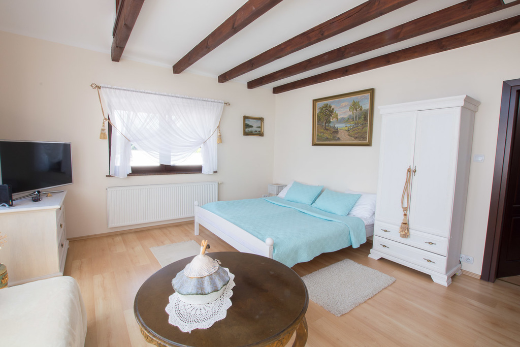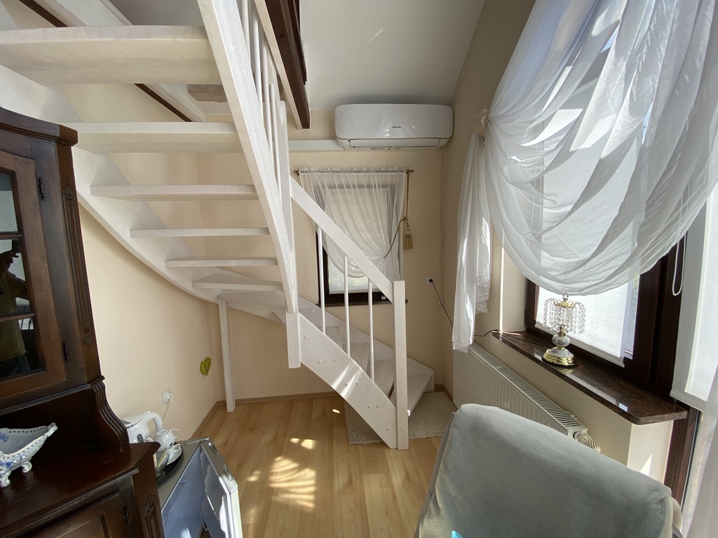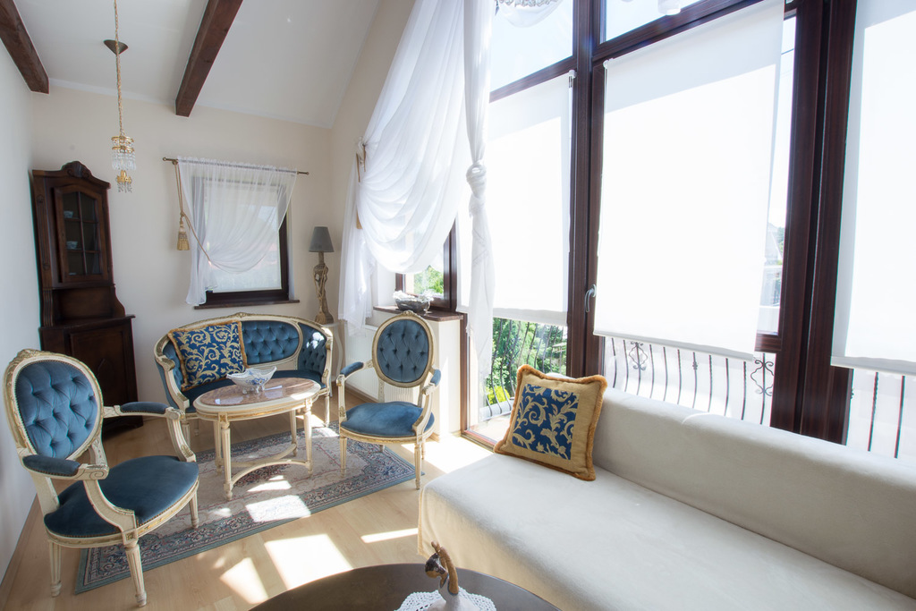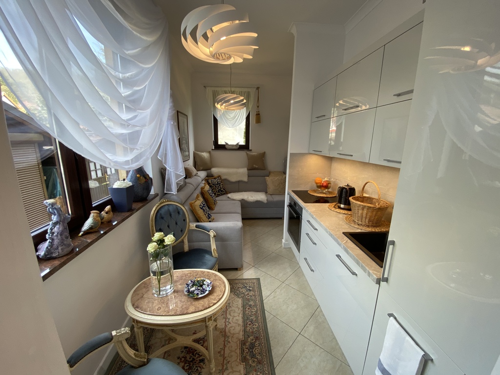 Na parterze znajduje się kawiarnia, galeria - lokale posiadają odzielne wejścia wraz z zapleczem kuchenno-socjanym. na piętrze i poddaszu znajdują się trzy apartamenty na wynajem z własnymi łazienkami.