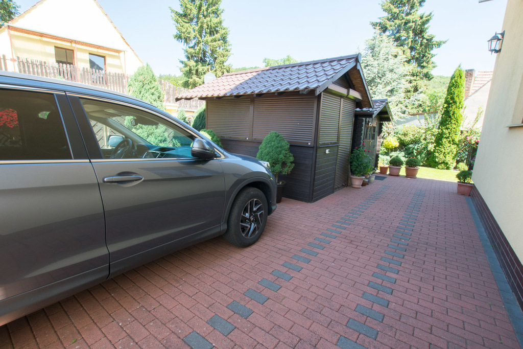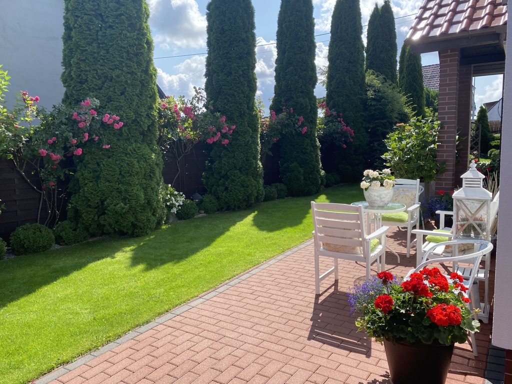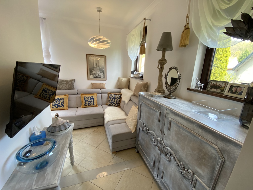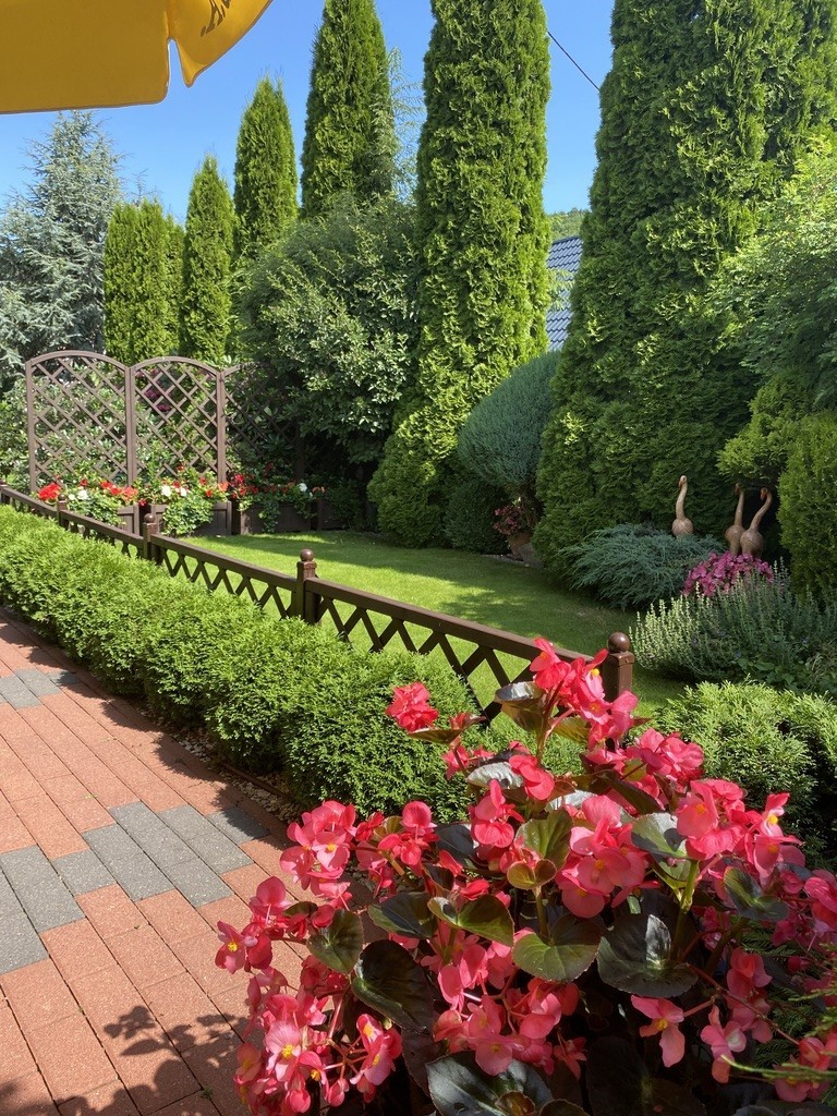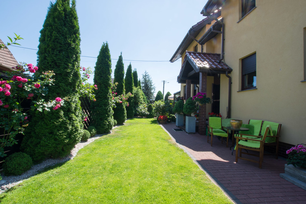 Standard wykończenia: budynek o konstrukcji murowanej z pustaków ceramicznych Porotherm, ocieplonych styropianem, dachówka ceramincza wysokiej jakości, budynek ogrodzny z licznymi nasadzeniami, podjazd z kostki brukowej.
