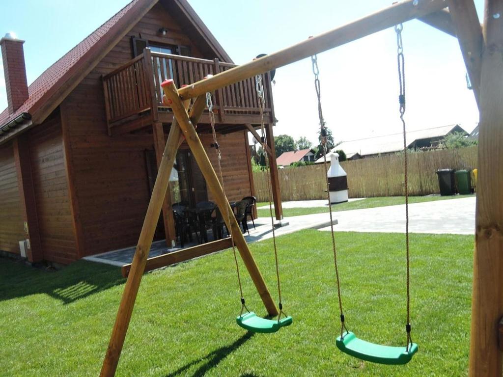 Powierzchnia całkowita domku to 85,44m2. Znajduje się on na działce o powierzchni 342m2, w całości ogrodzonej. Na parterze znajduje się salon z aneksem kuchennym, z miejscem na kącik jadalny, oraz łazienka. Z salonu wychodzimy na zadaszony taras. Na drugim poziomie znajdują się 2 pokoje. Z jednego wyjście na balkon z ładnym widokiem. Na terenie działki mamy parking na auta, grillowisko oraz zestaw huśtawek.