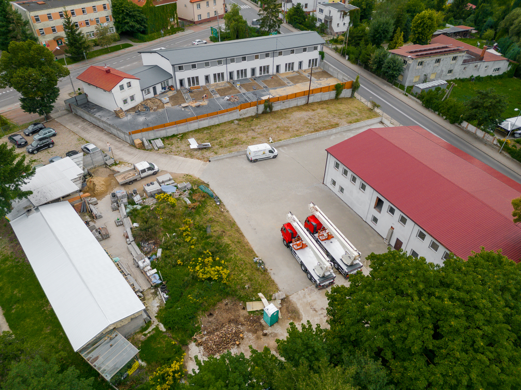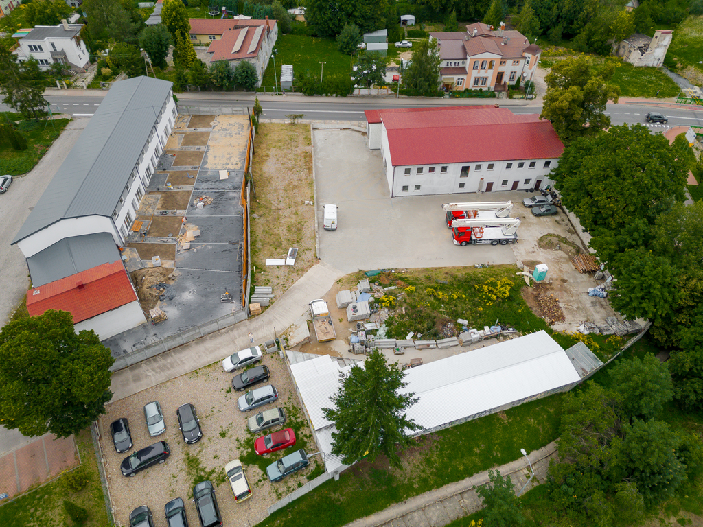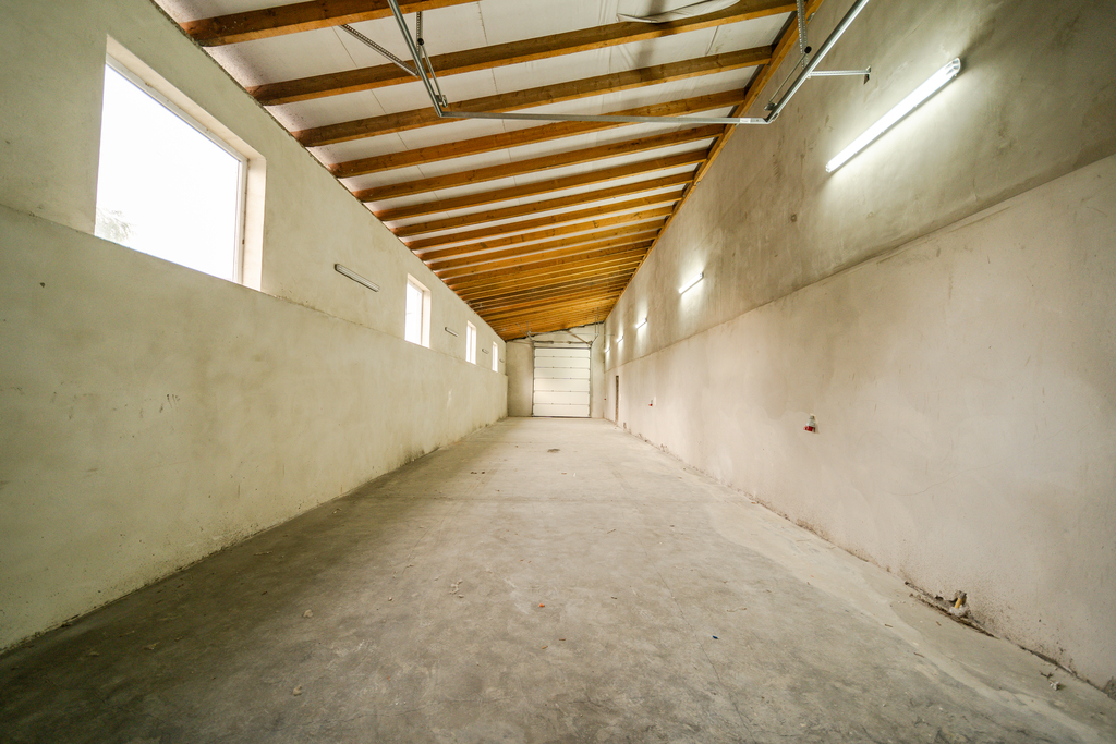 Plac został utwardzony i wyłożony solidną kostką brukową, zużywając aż 1400 m2 tego materiału. To sprawia, że nieruchomość jest gotowa do natychmiastowego użytku, a jednocześnie daje przyszłym właścicielom szansę na dowolną adaptację w zależności od potrzeb. Doskonale nadaje się jako warsztat samochodowy lub magazyn dzięki dużemu, utwardzonemu obszarowi. Nowe bramy garażowe, sterowane na pilota, ułatwiają dostęp do nieruchomości, a wewnątrz budynku znajdują się grzejniki oraz oświetlenie.