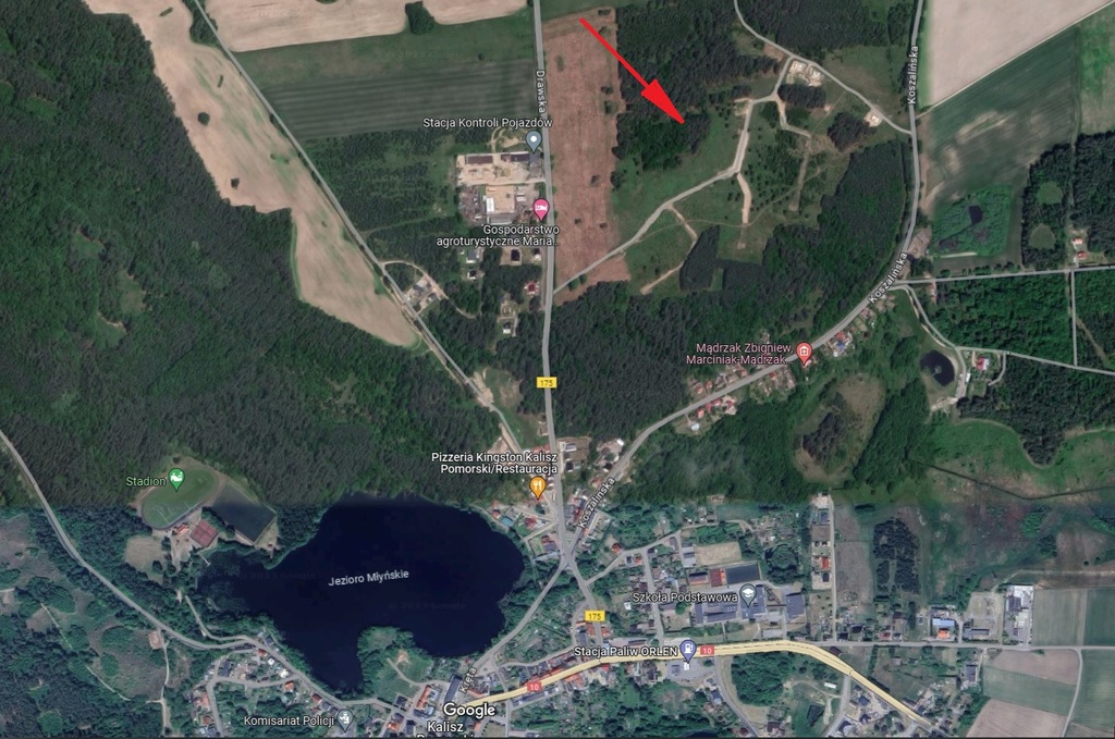 Działka 22/62 położona jest w granicach administracyjnych Miasta Kalisz Pomorski przy ul. Koszalińska w odległości 500 m od centrum. Usytuowana jest na wzniesieniu w malowniczo położonej części miasta i w otoczeniu terenów zielonych. Działka przylega bezpośrednio do lasu, a do Jeziora Młyńskiego jest około 250 m. Teren objęty jest miejscowym planem zagospodarowania przestrzennego w którym dopuszcza się budowę domów jednorodzinnych wolnostojących z funkcją uzupełniającą na lokalizowanie pomieszczeń związanych z miejscem pracy o nieprzekraczalnej powierzchni 30%pow. całkowitej lokalu mieszkalnego. Obecnie Gmina będzie uzbrajać teren w media, planowany termin ukończenia prac do 2024 r.