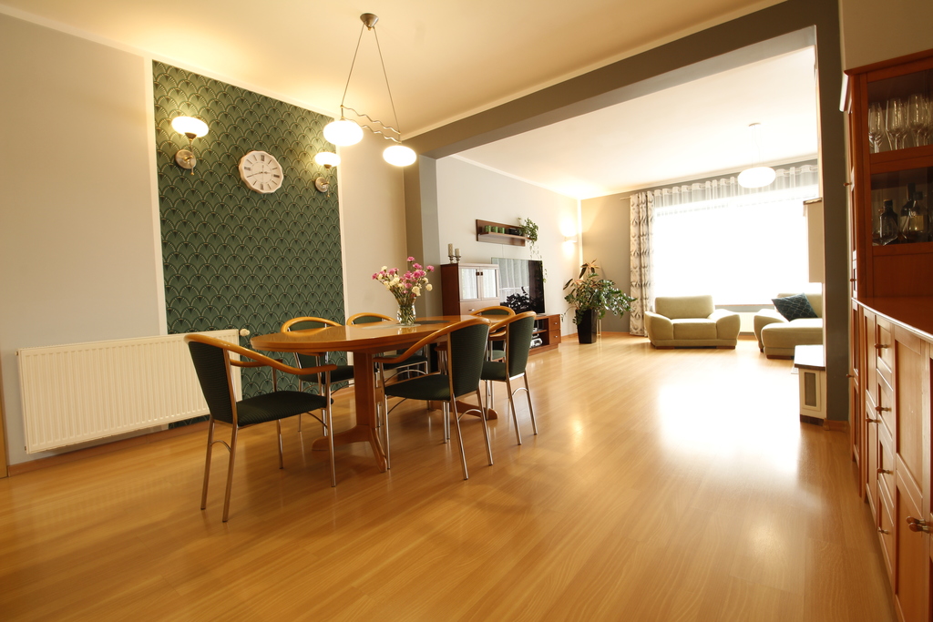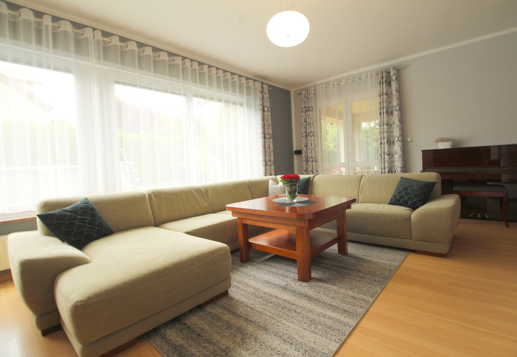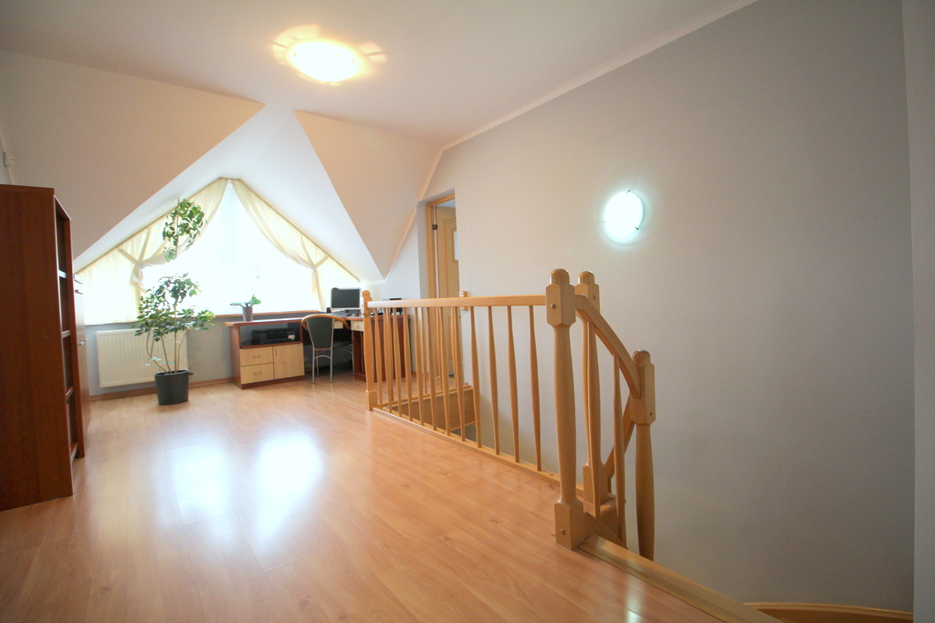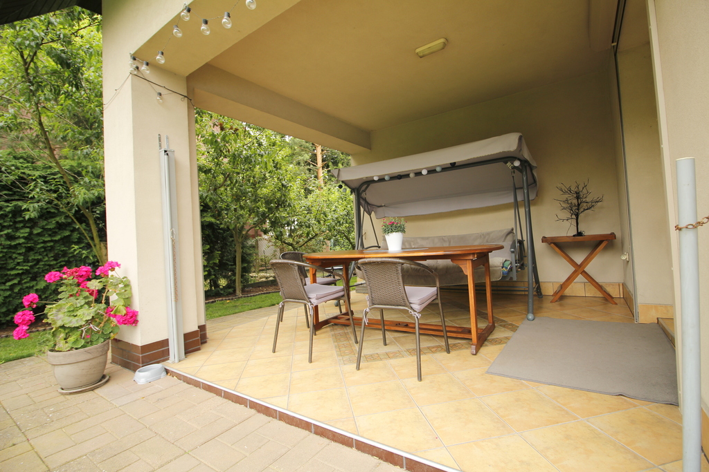 Dom wybudowany w 2000 roku z Porothermu, posadowiony na działce o powierzchni 817 mkw. Duży ogród z pięknie zagospodarowaną zielenią, dużą ilością nasadzeń, miejscem do wypoczynku i rekreacji. Na ogrodzie zlokalizowany domek ogrodowy, z miejscem na narzędzia, kosiarkę, drewno itp. Duży salon z kominkiem, wyprowadzenie ciepła także na hol na piętrze. Z salonu wyjście na taras.