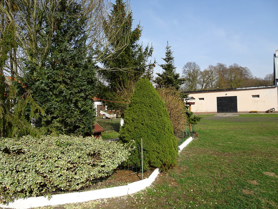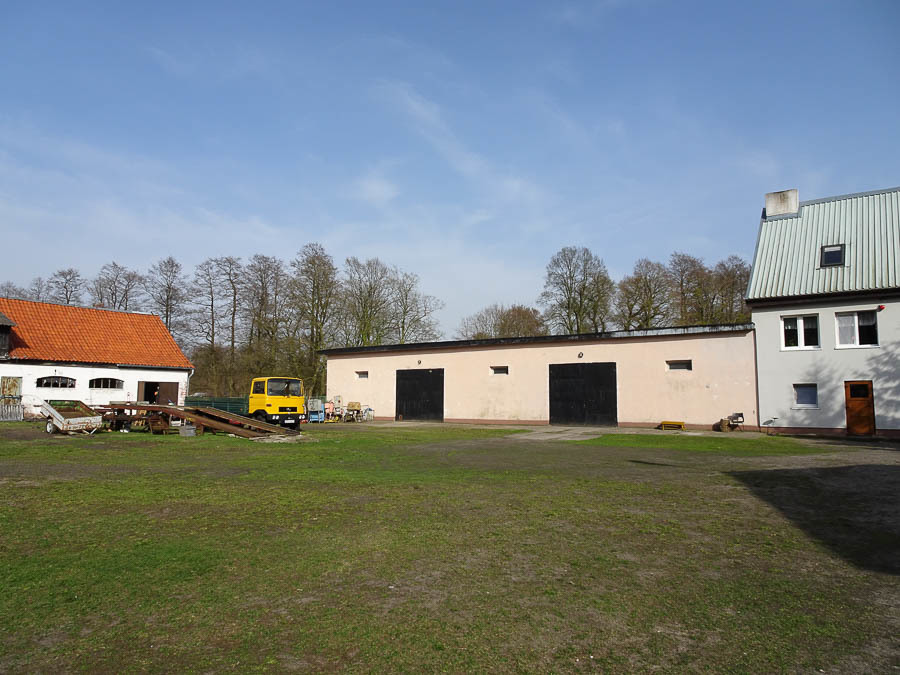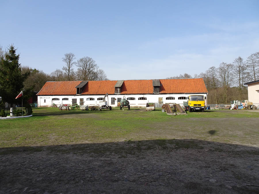 3. Budynek murowany, parterowy o powierzchni 242 m2, obecnie wykorzystany jako budynek gospodarczy, może służyć jako stajnia, garaż, hala magazynowa.