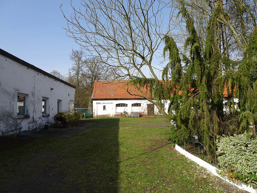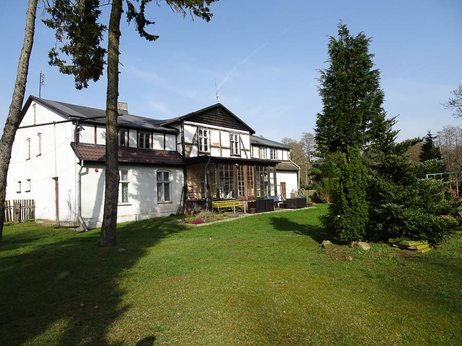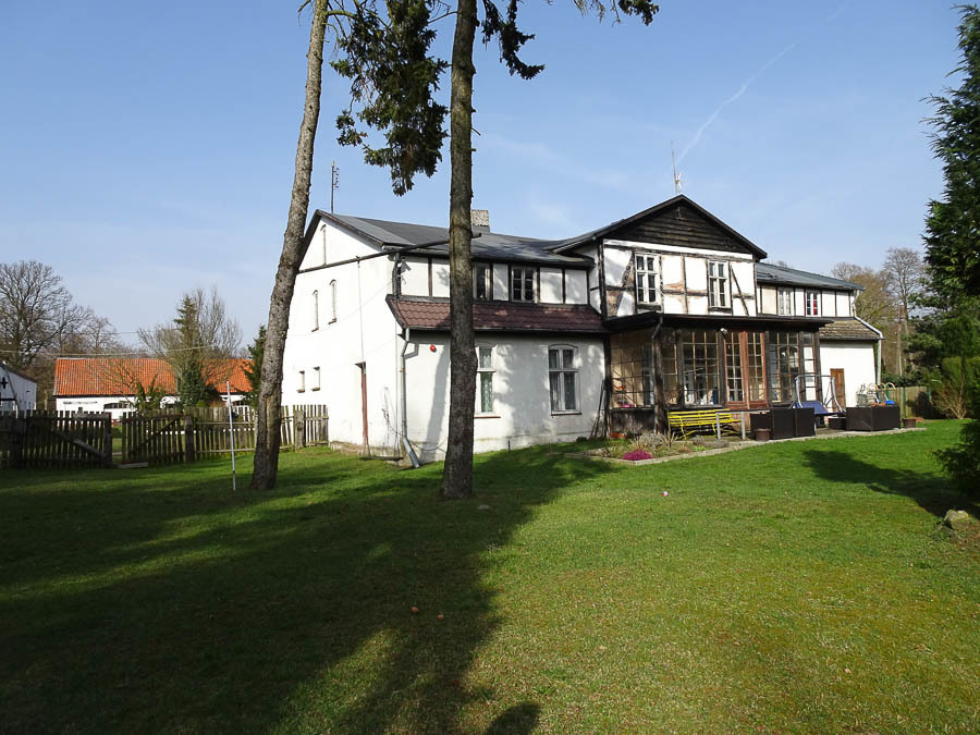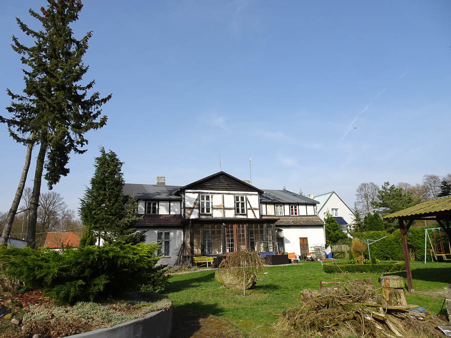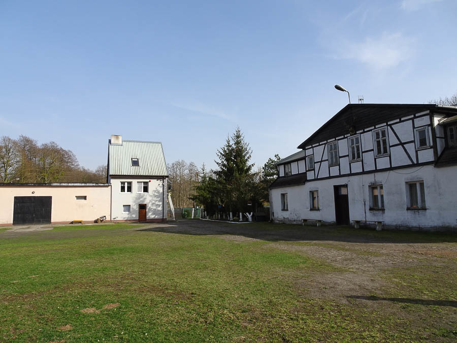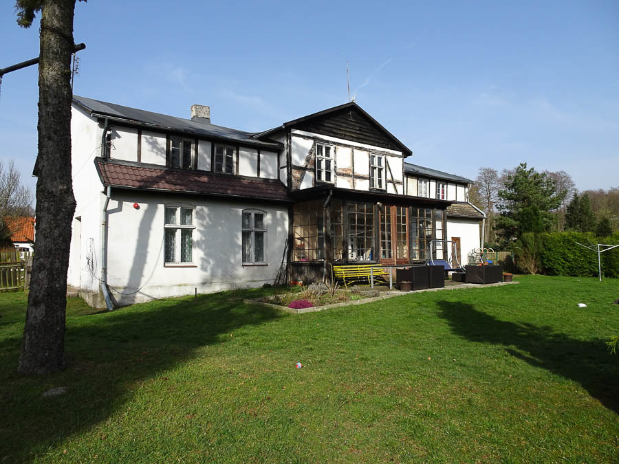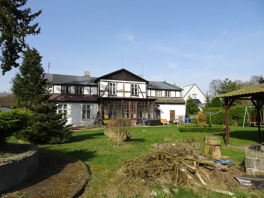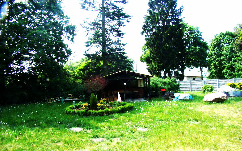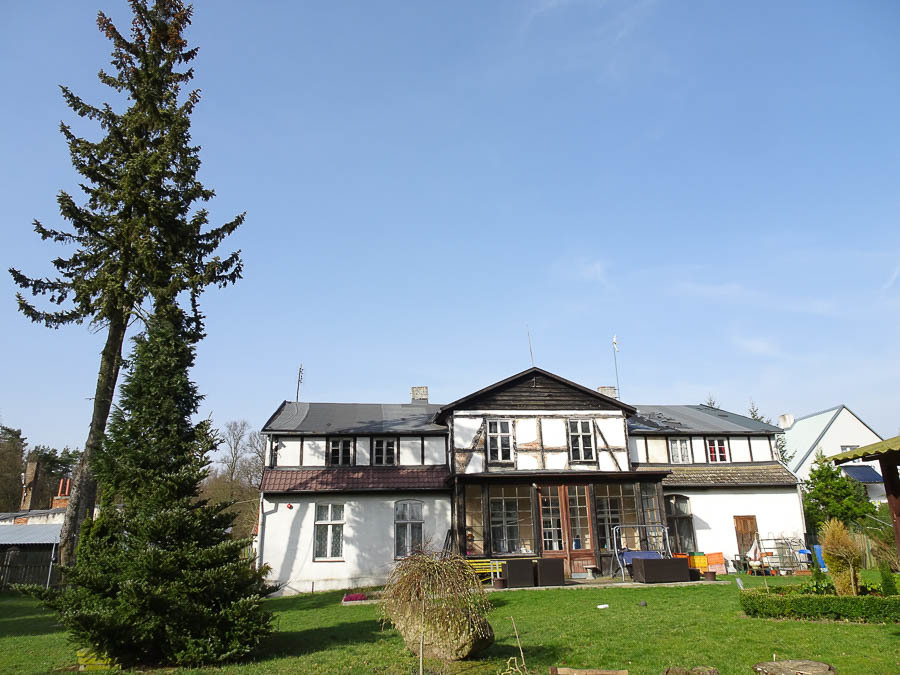 2. Budynek - klimatyczny stary dworek o powierzchni 191 m2. Parter o powierzchni 191 m2, piętro 50 m2, pokoje, kuchnia, łazienka. Konstrukcja murowana, częściowo mur pruski. Wyjście z pokoju na werandę i dalej do ogrodu. Dodatkowo ogród około 200 m2 z nasadzeniami, sad 400 m2 z drzewami owocowymi.