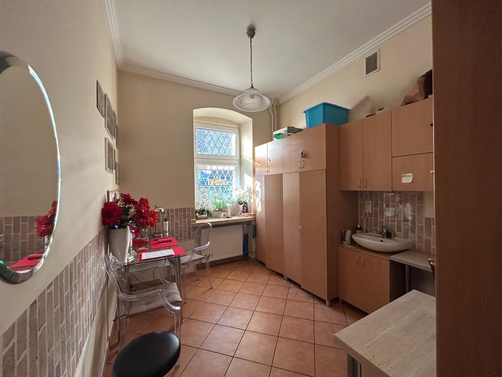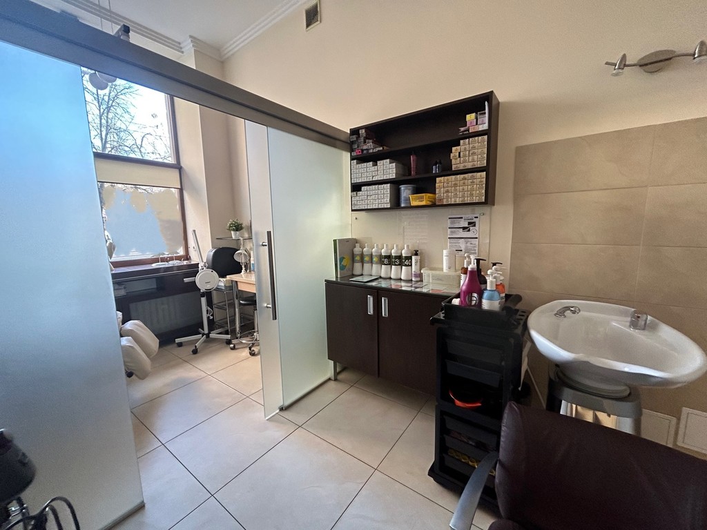 Obecnie lokal jest użytkowany jako salon fryzjerski z wydzieloną zamykaną częścią dla kosmetyczki itp.