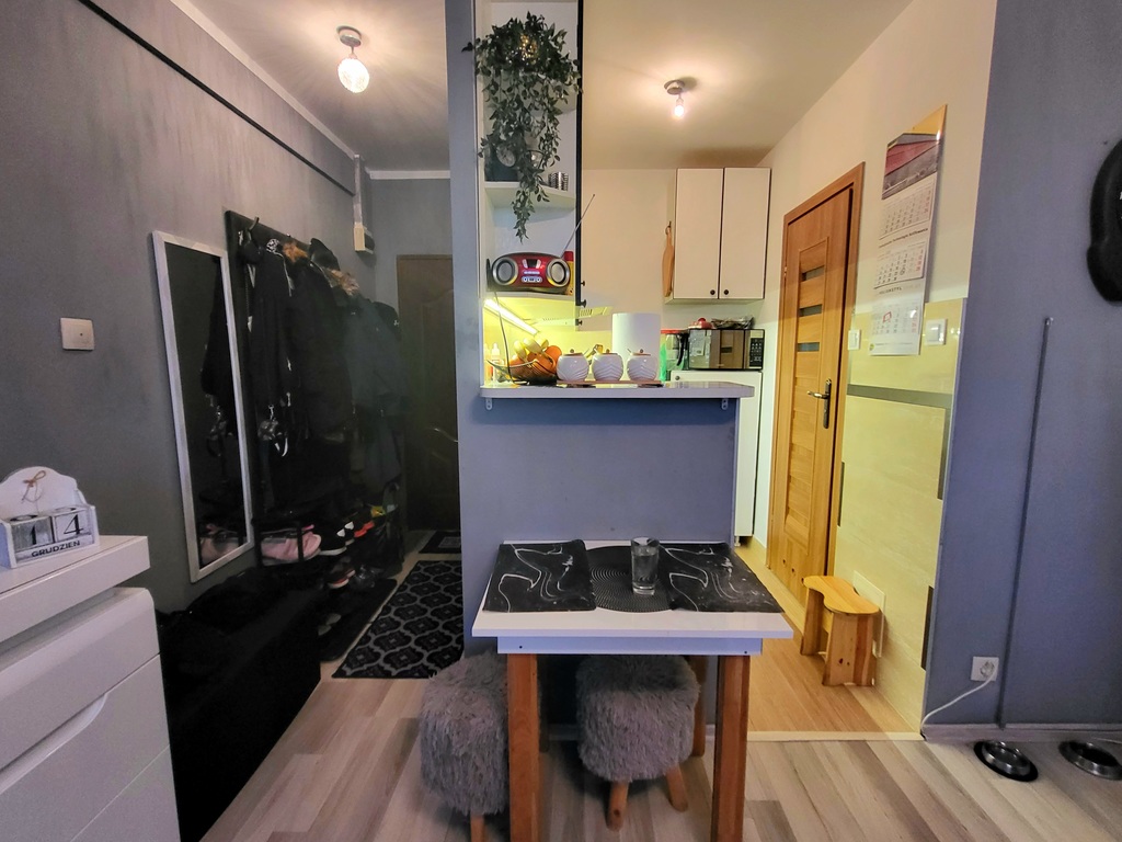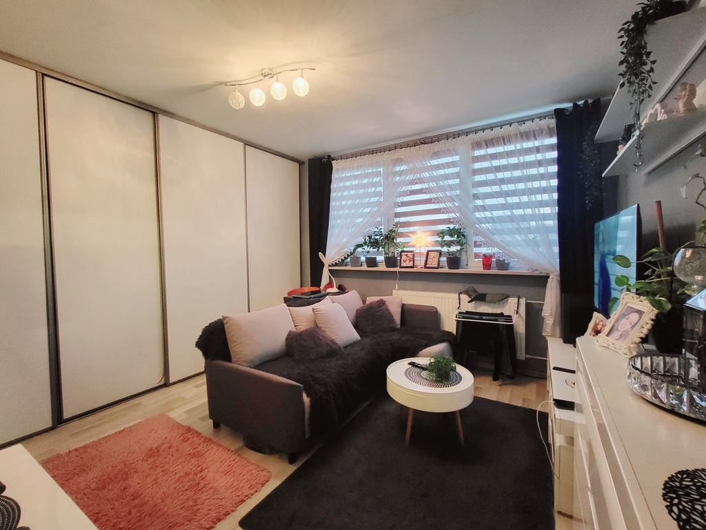 Lokal o powierzchni 24m² składa się z salonu z pojemną szafą w zabudowie, wyposażonego aneksu kuchennego, łazienki z prysznicem oraz przedpokoju. Mieszkanie jest ciepłe i bardzo dobrym stanie, gotowe do wprowadzenia. Pozostaje umeblowane i wyposażone co wpływa na komfort i wygodę przyszłego nabywcy. Znajduje się na 4 piętrze w bloku wybudowanym w latach 70. Dodatkowo do mieszkania przynależna jest piwnica, a przy budynku znajdują się liczne miejsca parkingowe.