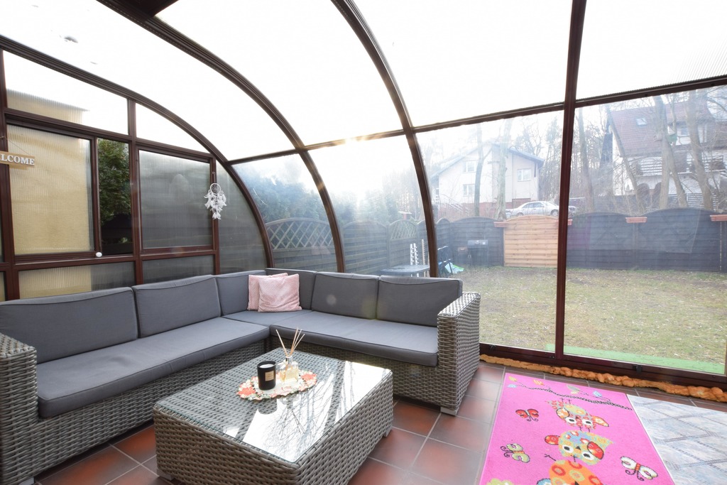 - Przestronny salon z otwartą kuchnia oraz wyjściem na taras i ogród,