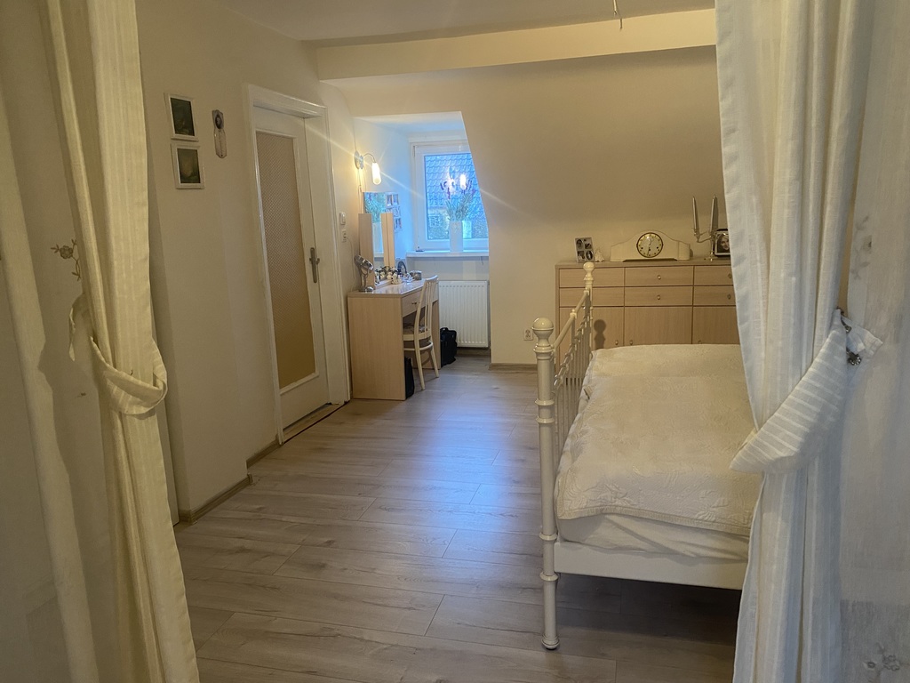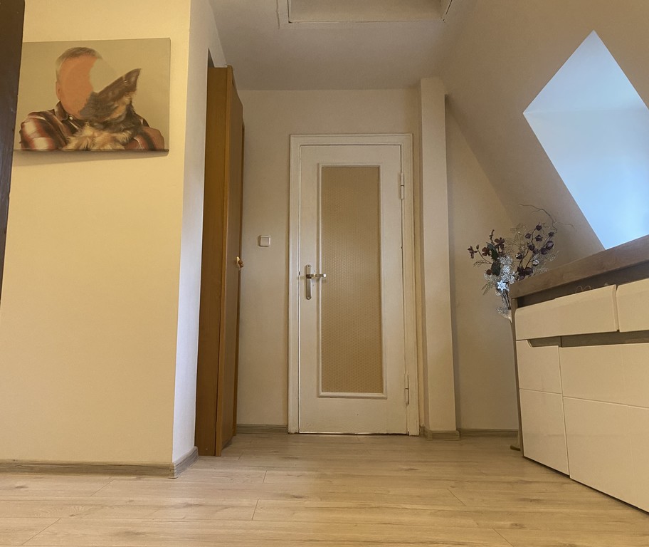 piętro : sypialnia 24m2 (pierwotnie 2 pokoje), łazienka z oknem, przedpokój