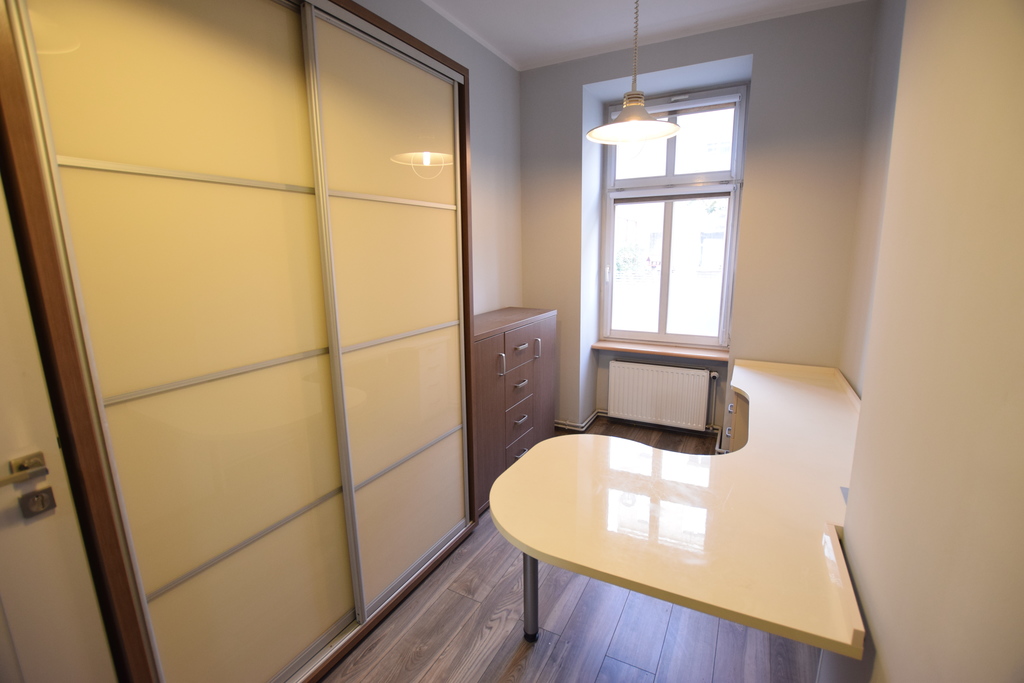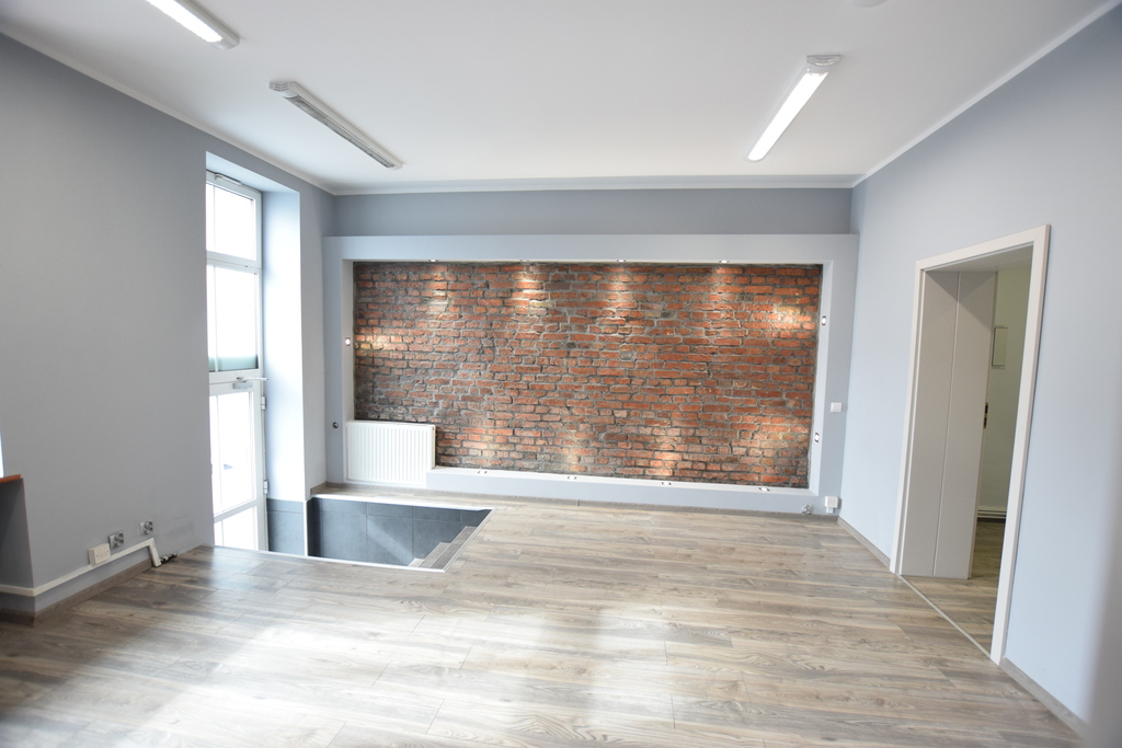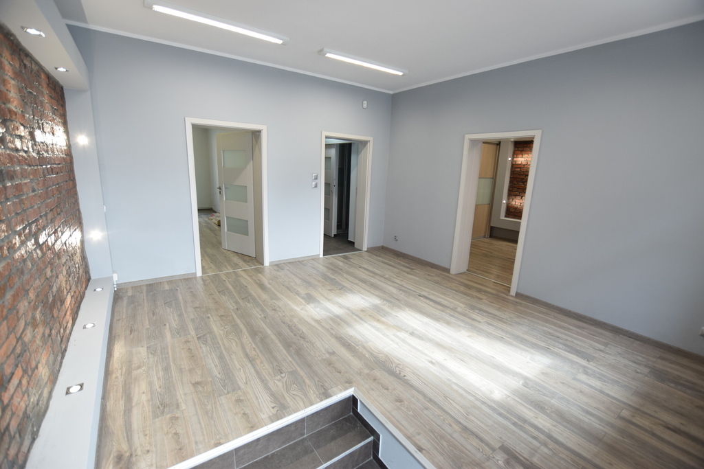 Lokal użytkowy/ mieszkalny w IDEALNEJ lokalizacji. Nowocześnie urządzony lokal użytkowy o powierzchni całkowitej 69,48 m2 z wejściem bezpośrednio z ulicy (dodatkowe wejście od strony budynku - dwa niezależne wejścia). Nieruchomość usytuowana w ścisłym centrum Szczecina w okolicach Al. Piastów. Lokal widoczny z ulicy Piastów, położony w bocznej uliczce. Umiarkowany ruch pieszych. Na powierzchnię całkowitą składają się: przestronna sala przeznaczona na recepcję; trzy samodzielne, widne pomieszczenia biurowe/ pokoje; pom. socjalne; łazienka z wc oraz przedpokój. Lokal po kapitalnym remoncie, urządzony w nowoczesnej kolorystyce, wymaga jedynie odświeżenia po najemcy. Na ścianach odsłonięta oryginalna cegła. Podłogi - panel o wysokiej klasie ścieralności, w toalecie i pom. socjalnym- gres. Okna PCV z obustronna wystawą okien. Od elewacji frontowej - rolety przeciwwłamaniowe.