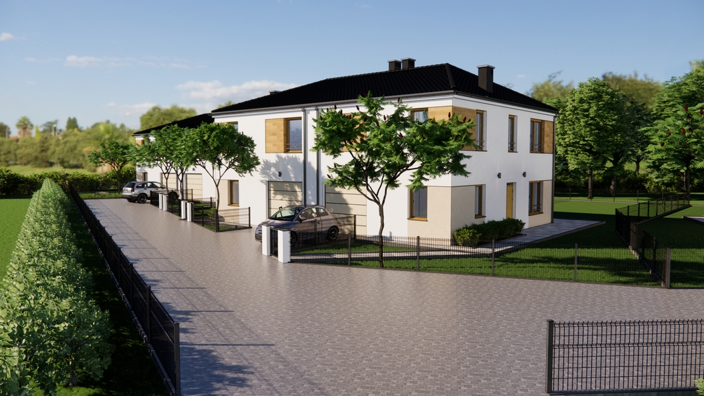 Na sprzedaż nowe domy dwulokalowe w zabudowie bliźniaczej w standardzie deweloperskim o powierzchni 117m2 z garażem .