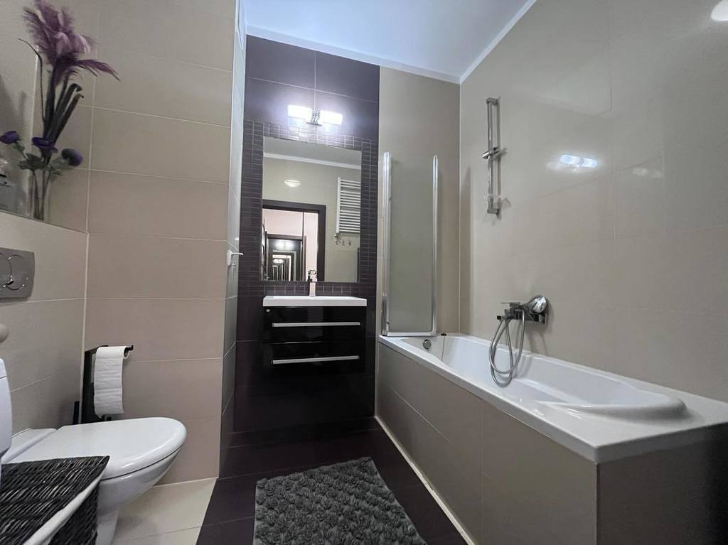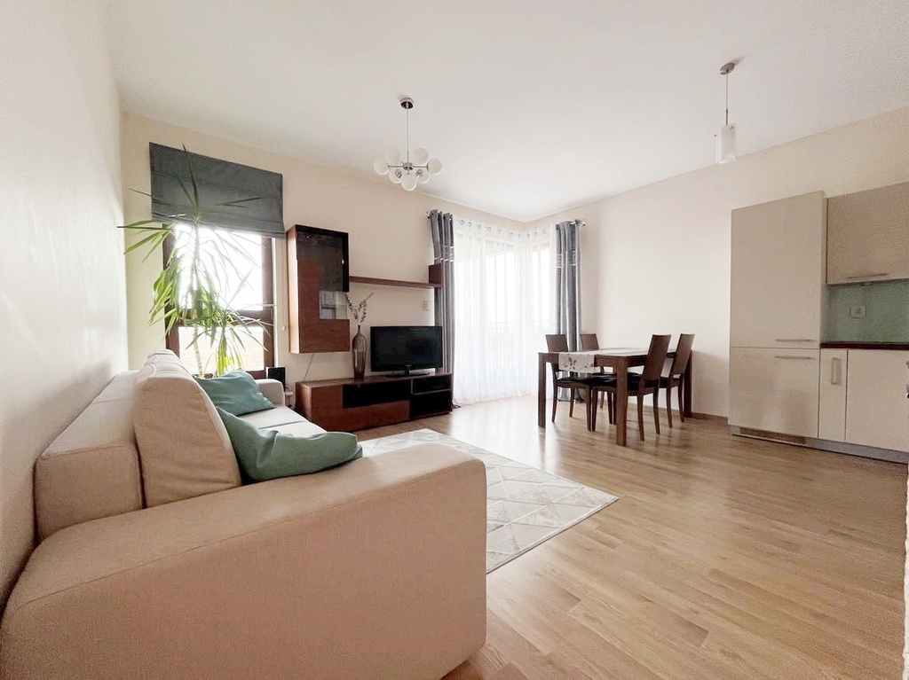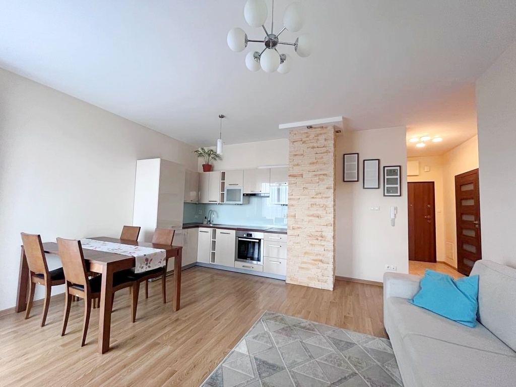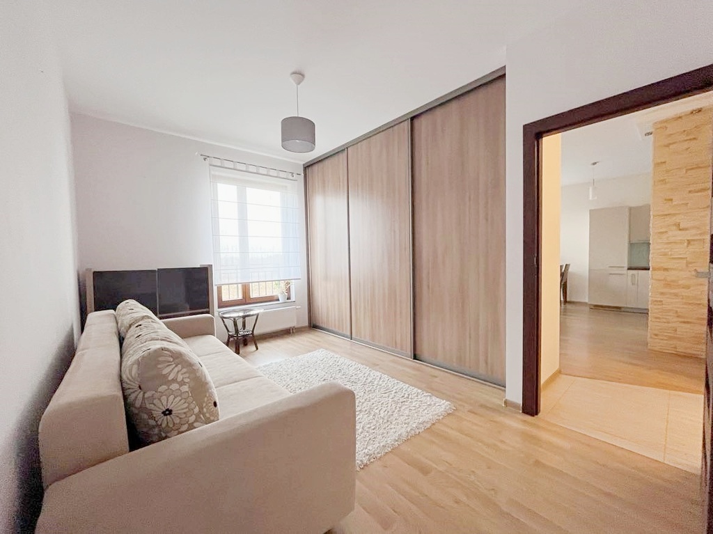Mieszkanie o wysokim standardzie wykończenia, w pełni wyposażone w sprzęt AGD, stała zabudowa wykonana na wymiar.