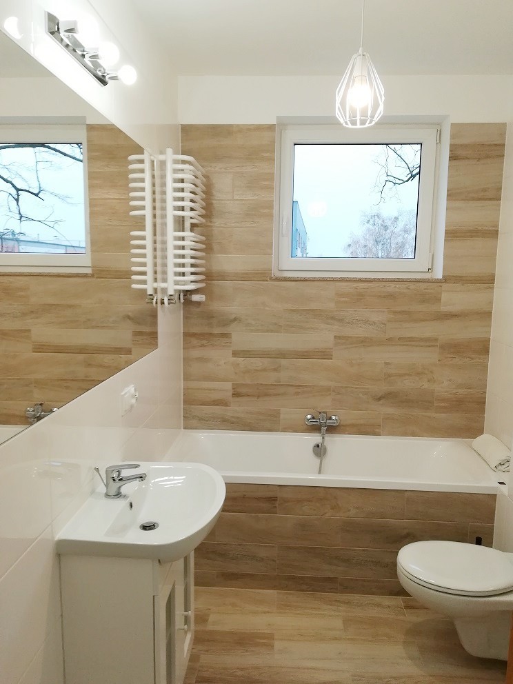 - plastered and painted walls, floor panels, tiles in the bathroom and kitchenette.