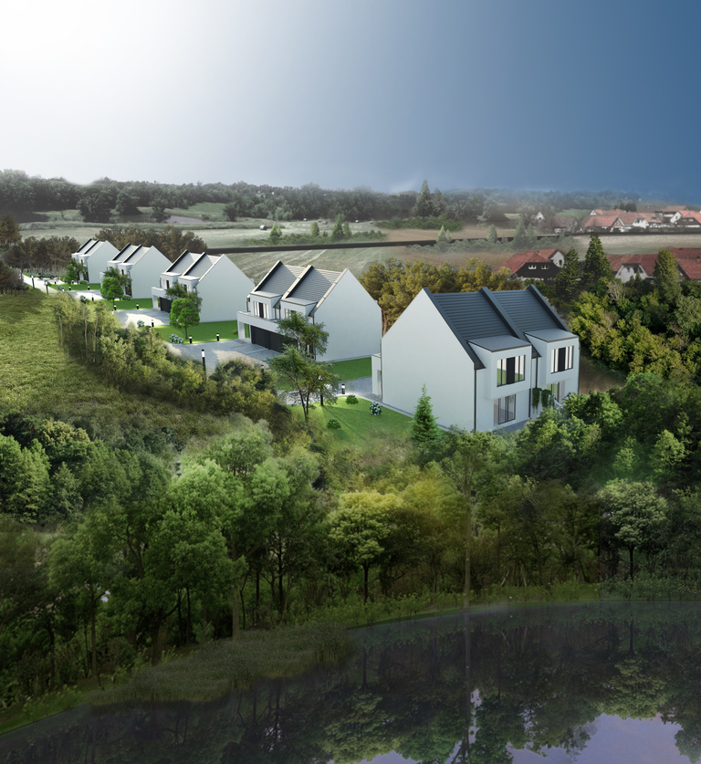 Zapraszamy do zapoznania się z wyjątkową ofertą nowoczesnych domów jednorodzinnych w zabudowie bliźniaczej, położonych nad malowniczym jeziorem Trzesiecko w Szczecinku na osiedlu Jarzębinowy Zakątek.