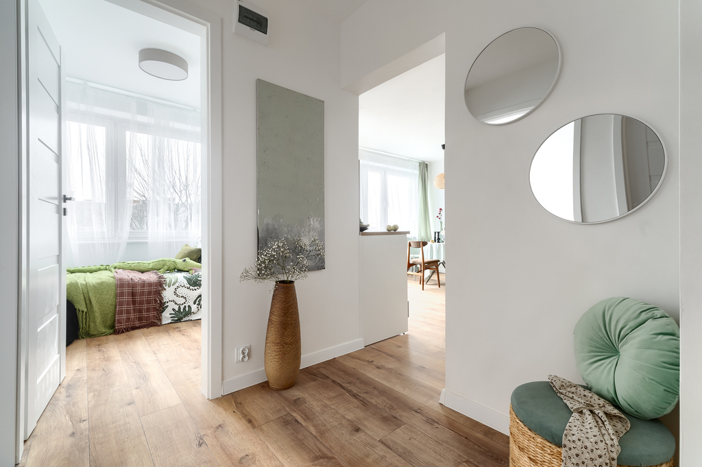 Znacznym atutem przedmiotowego mieszkania jest jego układ; w centralnej części wygodny przedpokój, obok przemyślana i bardzo ładna łazienka a dalej trzy główne pomieszczenia: salon z aneksem kuchennym - czyli strefa do wspólnego spędzania czasu, oraz dwa oddzielne pokoje (12 i 7 m2). Jeden z nich można przeznaczyć na azyl dla siebie i drugiej połówki, drugi może stanowić sypialnię dziecka czy też gabinet do pracy w domu.