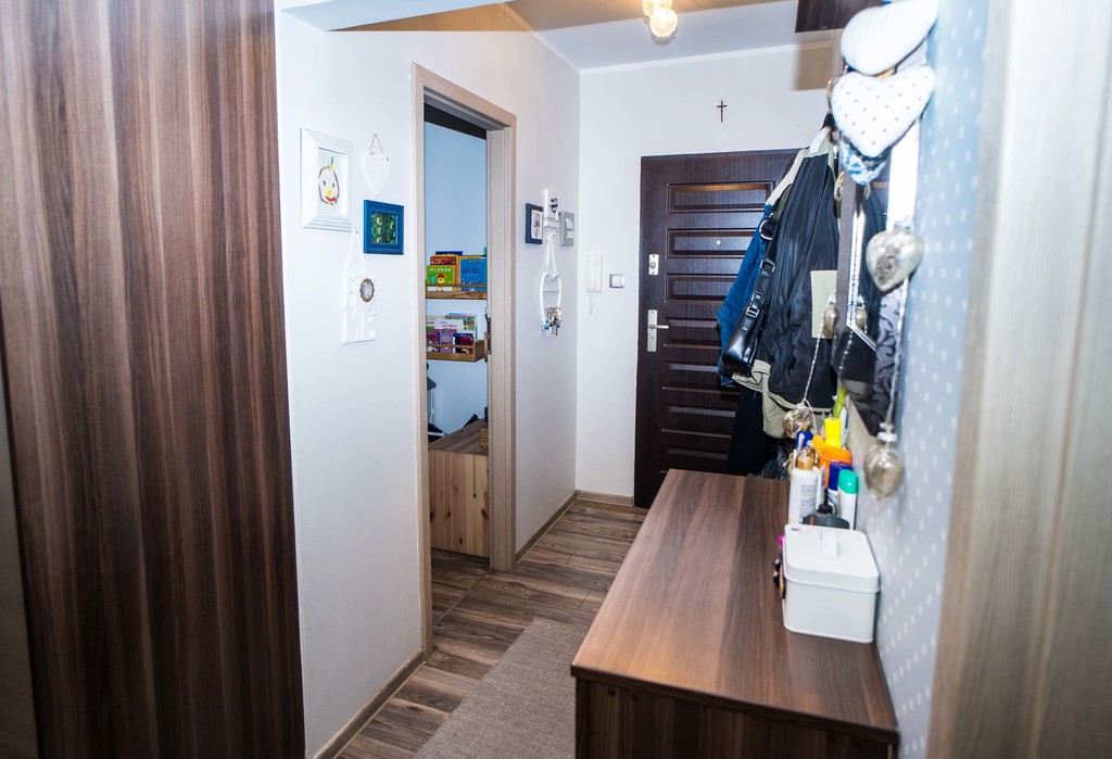 - ustawny przedpokój z dwoma pojemnymi szafami