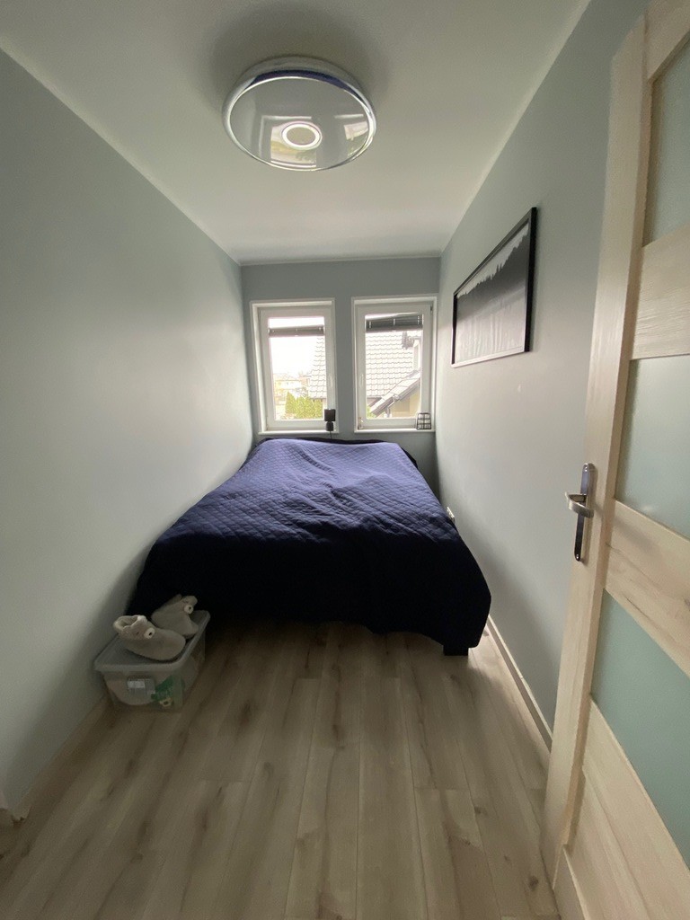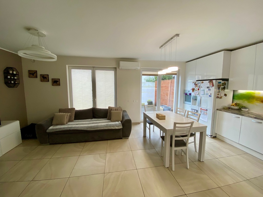 Mierzyn, dom z 2018r. zlokalizowany w cichym miejscu, a jednocześnie w bardzo bliskiej odległości od przystanku komunikacji miejskiej i "Mierzynianki". Świetne miejsce do zamieszkania dla rodziny, jak też ciekawa oferta pod wynajem. Osiedle domów jednorodzinnych. Nieruchomość stanowi lokal mieszkalny w domu jednorodzinnym w zabudowie bliźniaczej. Parter-wiatrołap z szafą, z niego jest również zamykane wejście do garażu, hall, toaleta, pomieszczenie gospodarcze, przestronny salon z aneksem kuchennym o powierzchni 32m2. Kuchnia zabudowana i wyposażona w sprzęt agd (być może jedynie lodówka będzie zabrana przez właścicieli). Z salonu wyjście na taras i ogród od strony SW. Jest również przygotowane miejsce pod kominek. Garaż z automatycznie otwieraną bramą. Na podjeździe bez problemu mogą zaparkować dodatkowo dwa samochody. Piętro- 3 niezależne pokoje bez skosów! o pow.- sypialnia z garderobą 10,6m2, pozostałe pokoje-14,5, oraz 15m2, ponadto pokój kąpielowy z oknem o pow. 10m2 z wanną, oraz kabiną prysznicową. Pokoje bardzo ustawne. Nad piętrem znajduje się strych nieużytkowy. Dach ocieplony pianką PUR. W całym domu ogrzewanie gazowe podłogowe, piec dwuobiegowy, dodatkowo w salonie zainstalowana klimatyzacja. Zainstalowana instalacja alarmowa. Wydanie domu do uzgodnienia. W bliskiej odległości znajdują się sklepy (Biedronka, Netto, Żabka), apteka, gabinety medyczne, kościół, basen dla dzieci, żłobek, przedszkole, szkoła.