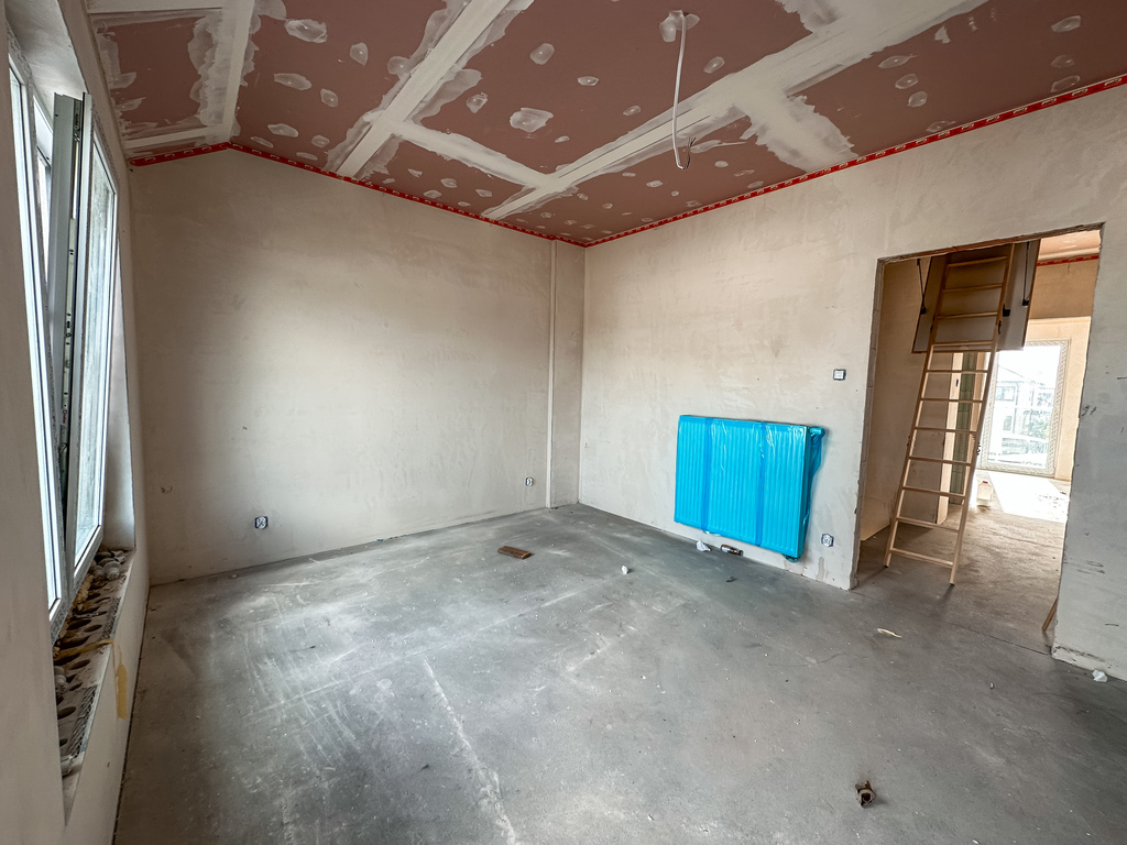 - Na piętrze znajduje się główny pokój (17 m²) z garderobą (7,6 m²) oraz prywatną łazienką (8,7 m²), dwie sypialnie (12,16 m² każda), łazienka (3,25 m²) i pralnia (2,9 m²).