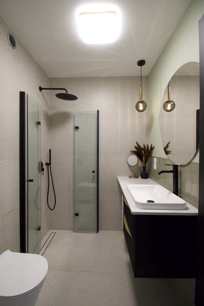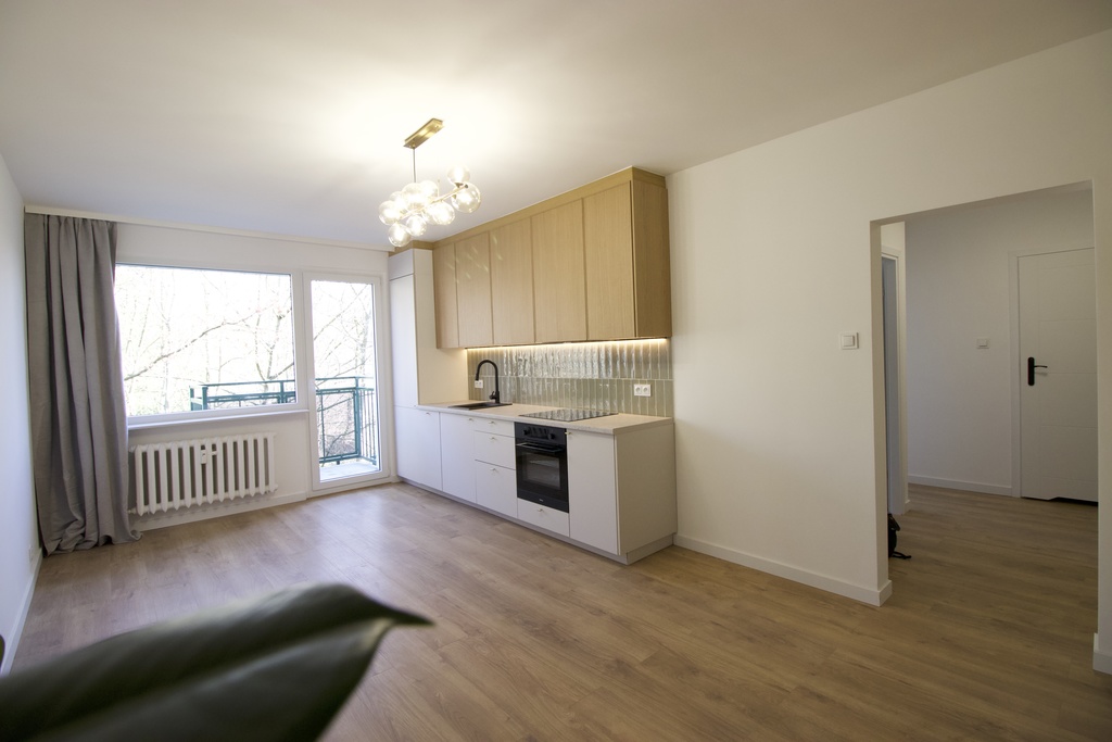 W mieszkaniu został przeprowadzony kapitalny remont łącznie z wymianą instalacji elektrycznej oraz wodno-kanalizacyjnej, a o aranżację wnętrza zadbał architekt wnętrz.