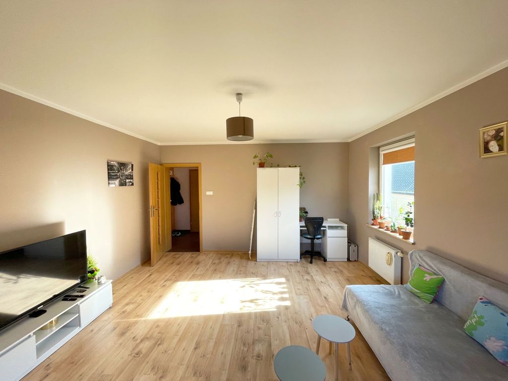 Polecam bardzo atrakcyjne, przestronne mieszkanie 2-pokojowe położone na 1 piętrze w 2-piętrowym budynku z cegły wybudowanym w 2008 roku w spokojnej części Polic. Powierzchnia mieszkania to 55,96 m2 na którą składa się duży pokój pełniący role salonu ( ok. 19 m2) z wyjściem na duży balkon, mniejszy pokój (ok. 13 m2) pełniący role sypialni. Kuchnia duża widna z nowoczesną zabudową na wymiar z AGD ( płyta gazowa z piekarnikiem elektrycznym, okap, zmywarka). Łazienka duża z oknem razem z wc, wykończona glazurą i terakotą. Ściany gładzone i malowane, na podłogach w pokojach położone panele, w przedpokoju i kuchni położona jednolita terakota. W przedpokoju zabudowa szafy typu komandor. Stolarka drzwiowa nowa, okna PCV. Posesja jest ogrodzona z bramą na pilota, przy budynku miejsca postojowe. Blisko do przystanków komunikacji miejskiej, sklepów, szkoły. Ogólnie mieszkanie bardzo zadbane, utrzymane w ciepłej tonacji.